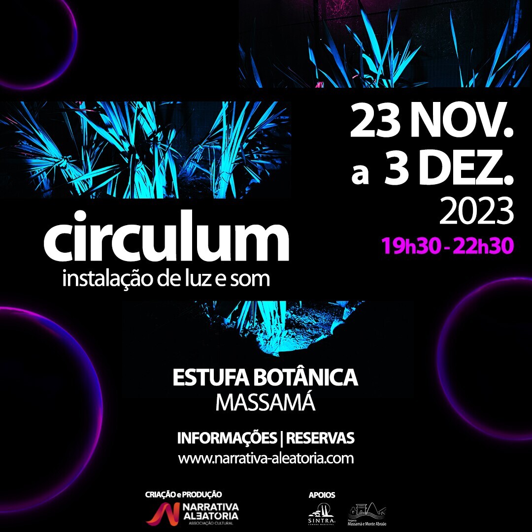 A Associação Cultural Narrativa Aleatória, produz um espetáculo imersivo de luz “CIRCULUM”. Trata-se de uma instalação imersiva de luz e de som, que iluminará o espaço da Estufa botânica da Quinta das Flores, em Massamá.