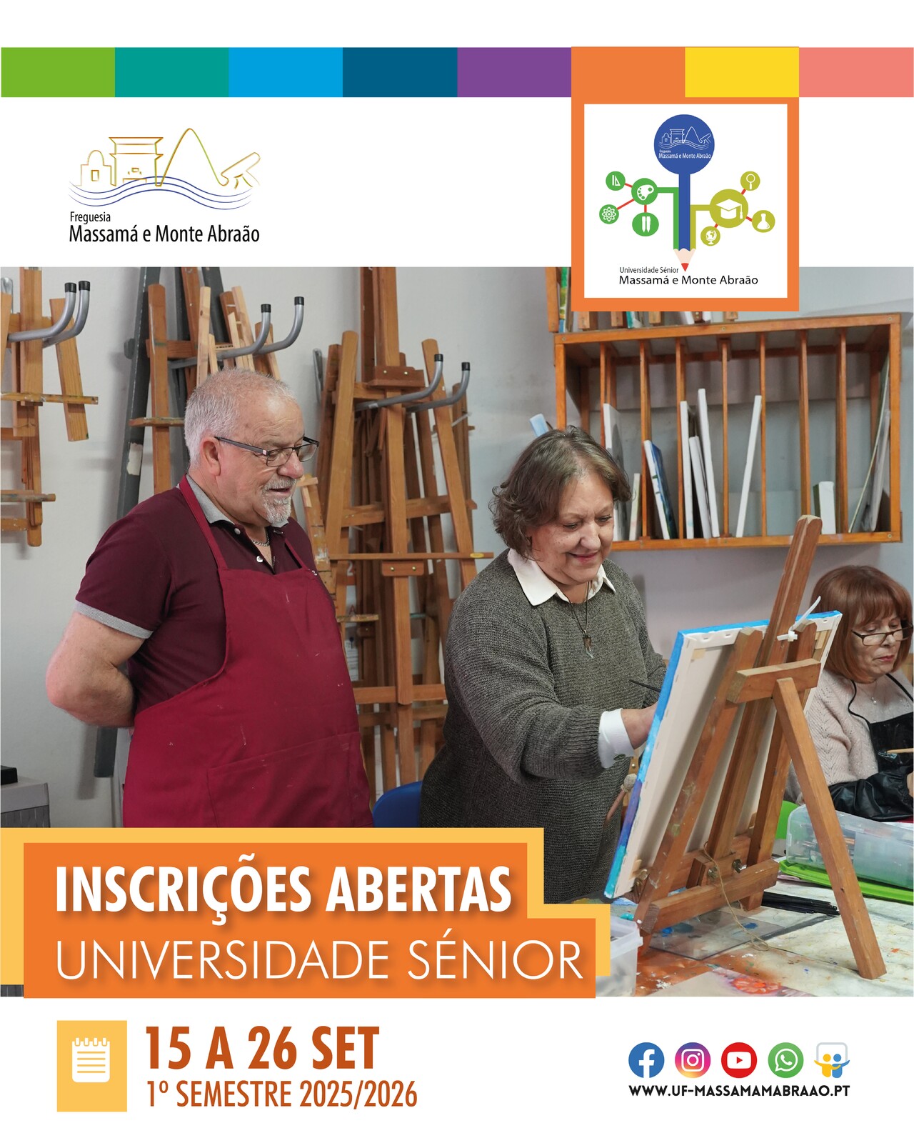 A Universidade Sénior de Massamá e Monte Abraão tem aberto o seu período de inscrições de 15 de setembro a 26 de setembro para as mais de 60 disciplinas existentes!