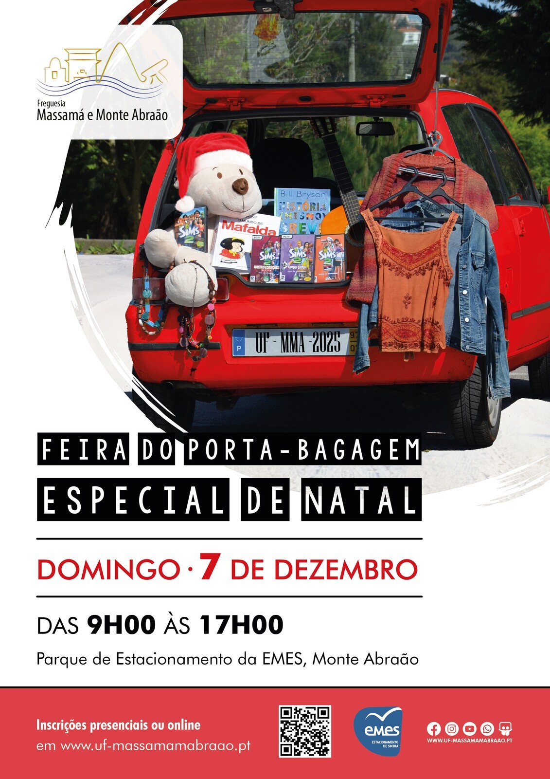 Se tem roupa, acessórios, livros, brinquedos ou outros que gostaria de vender, poderá fazê-lo na próxima edição da Feira do Porta-Bagagem da União das Freguesias de Massamá e Monte Abraão, que acontece no dia 7 de dezembro.