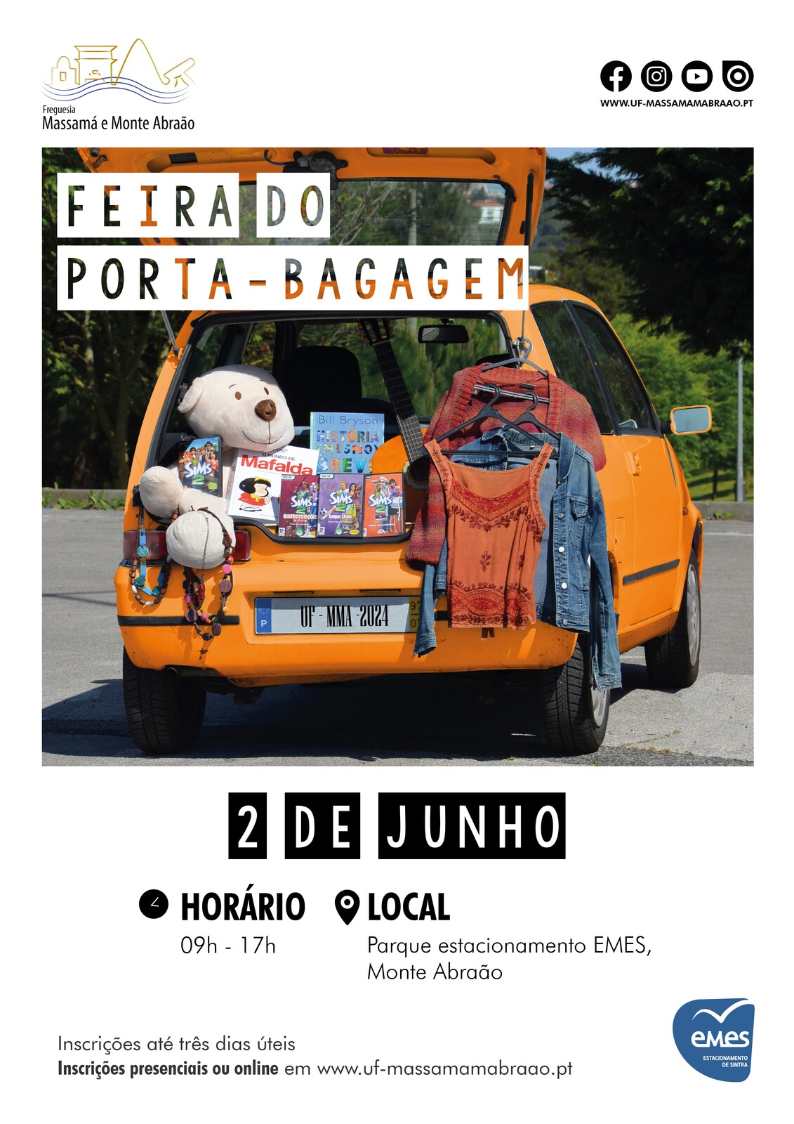 A Feira do Porta-Bagagem decorrerá no parque de estacionamento da EMES (frente à Escola Secundária Miguel Torga), em Monte Abraão, das 09h00 às 17h00!