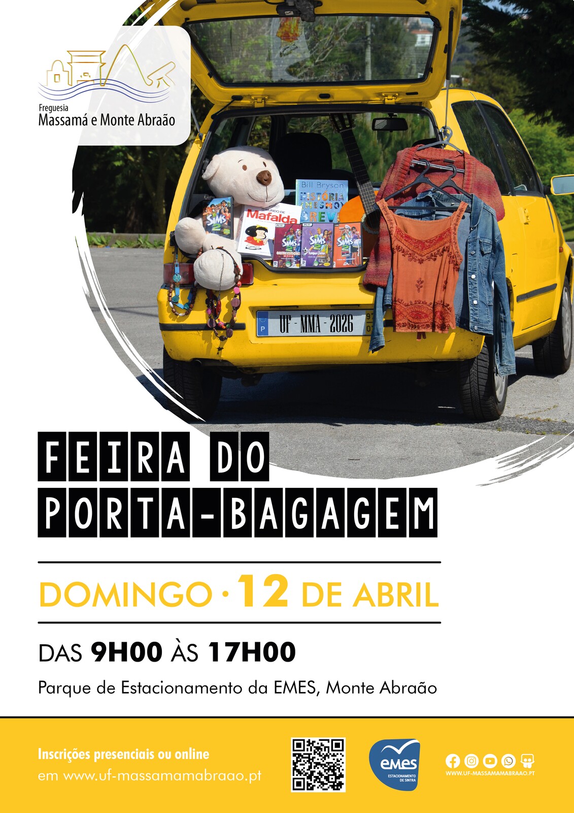 A Feira do Porta-Bagagem decorre no Parque de Estacionamento da EMES (frente à Escola Secundária Miguel Torga), em Monte Abraão.