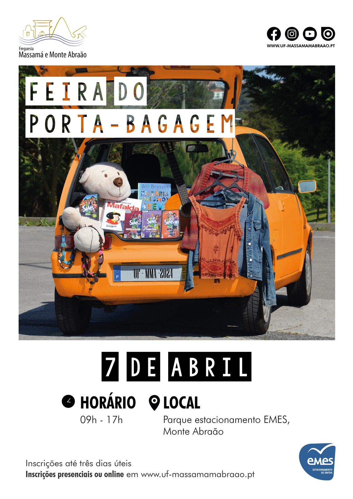 A próxima Feira do Porta-Bagagem decorrerá dia 7 de abril no parque de estacionamento da EMES, em Monte Abraão. Esperamos por si!