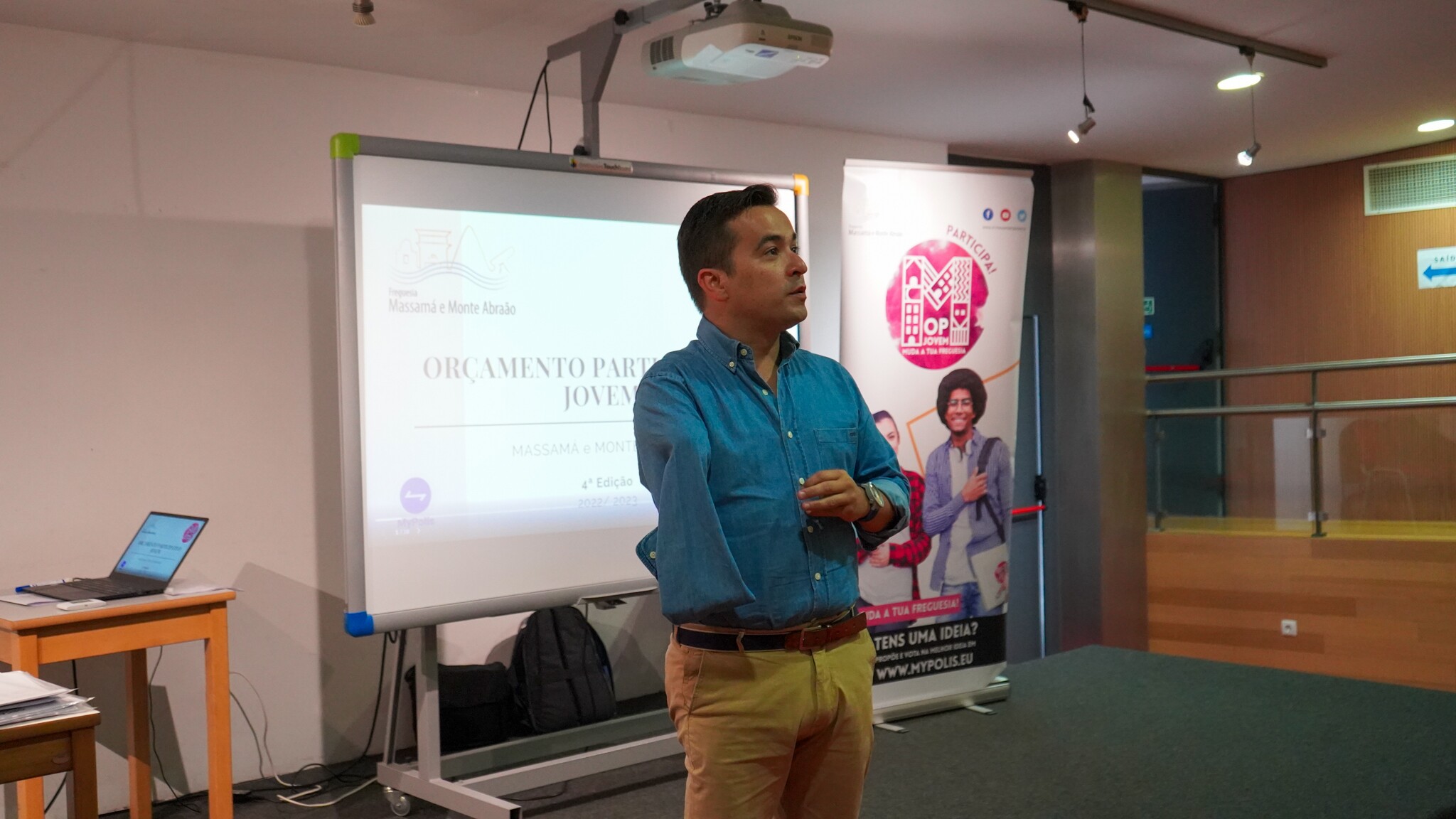 A sessão pública que decorreu no Centro Lúdico de Massamá, na qual estive presente, Pedro Oliveira Brás, presidente da União das Freguesias, do presidente da Assembleia de freguesia, Dr. Víctor Hugo Alves, membros do executivo, alunos e docentes das 5 escolas da freguesia de 3.º ciclo e secundário, membros da MyPolis, representantes de associações e outros cidadãos.