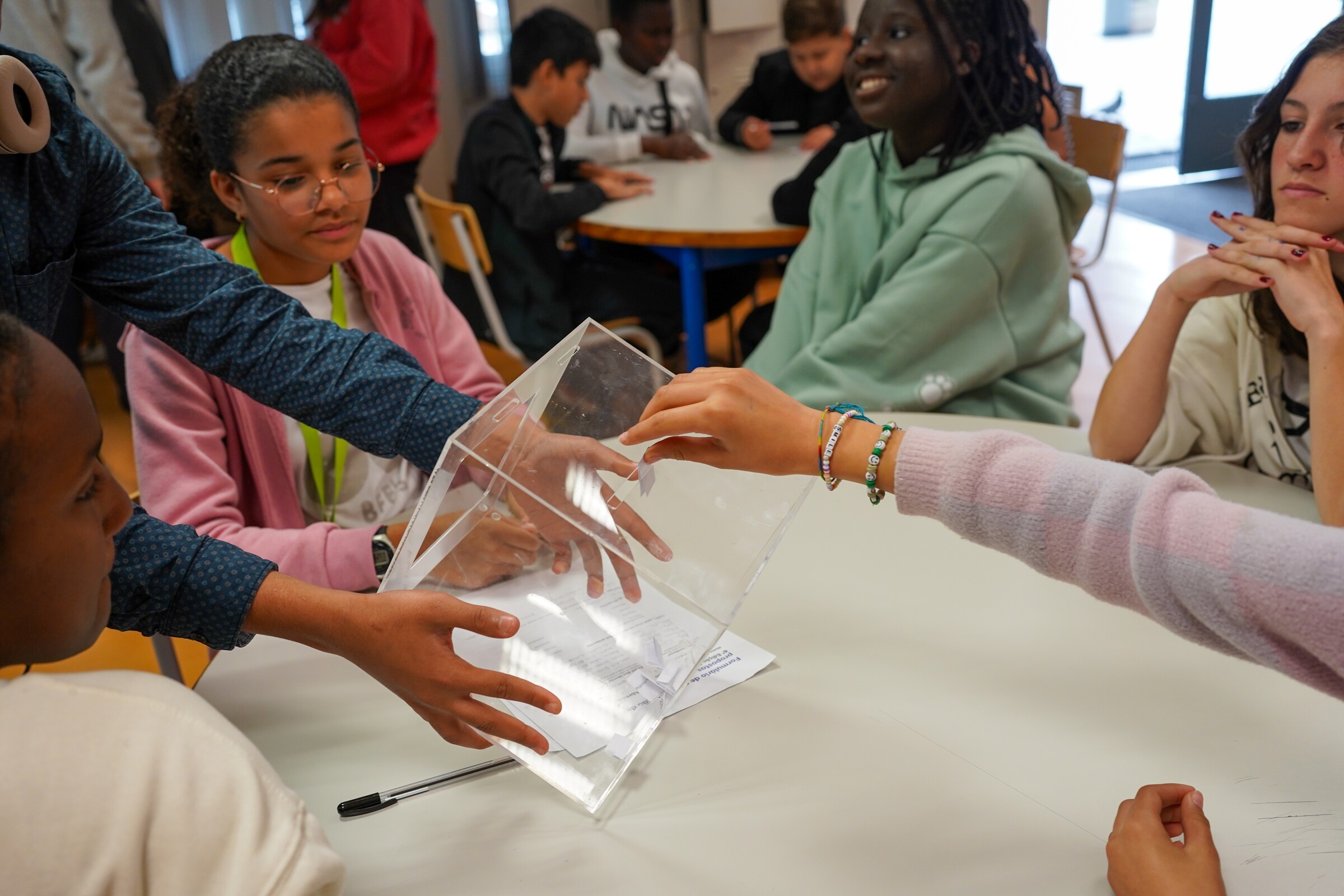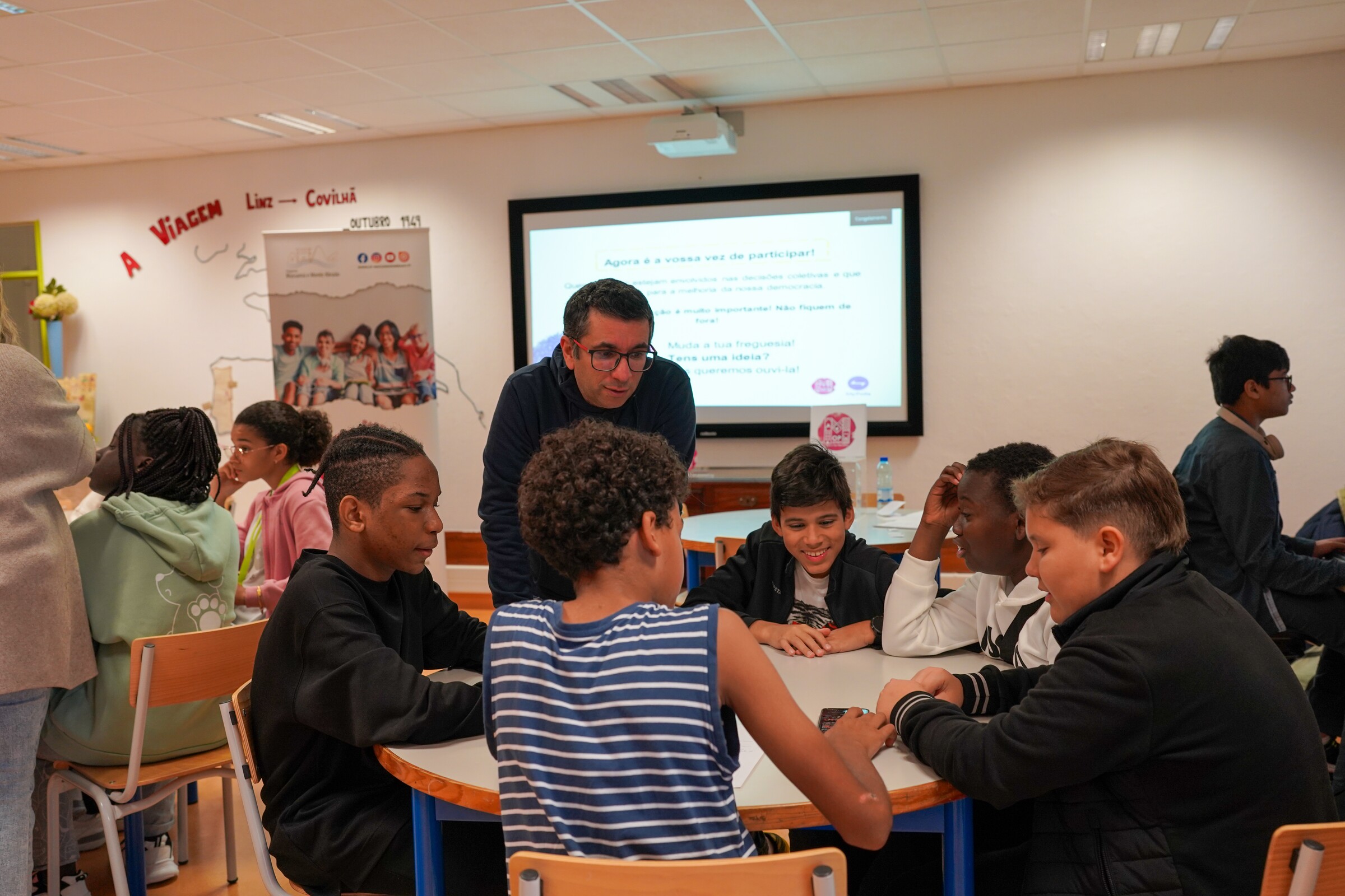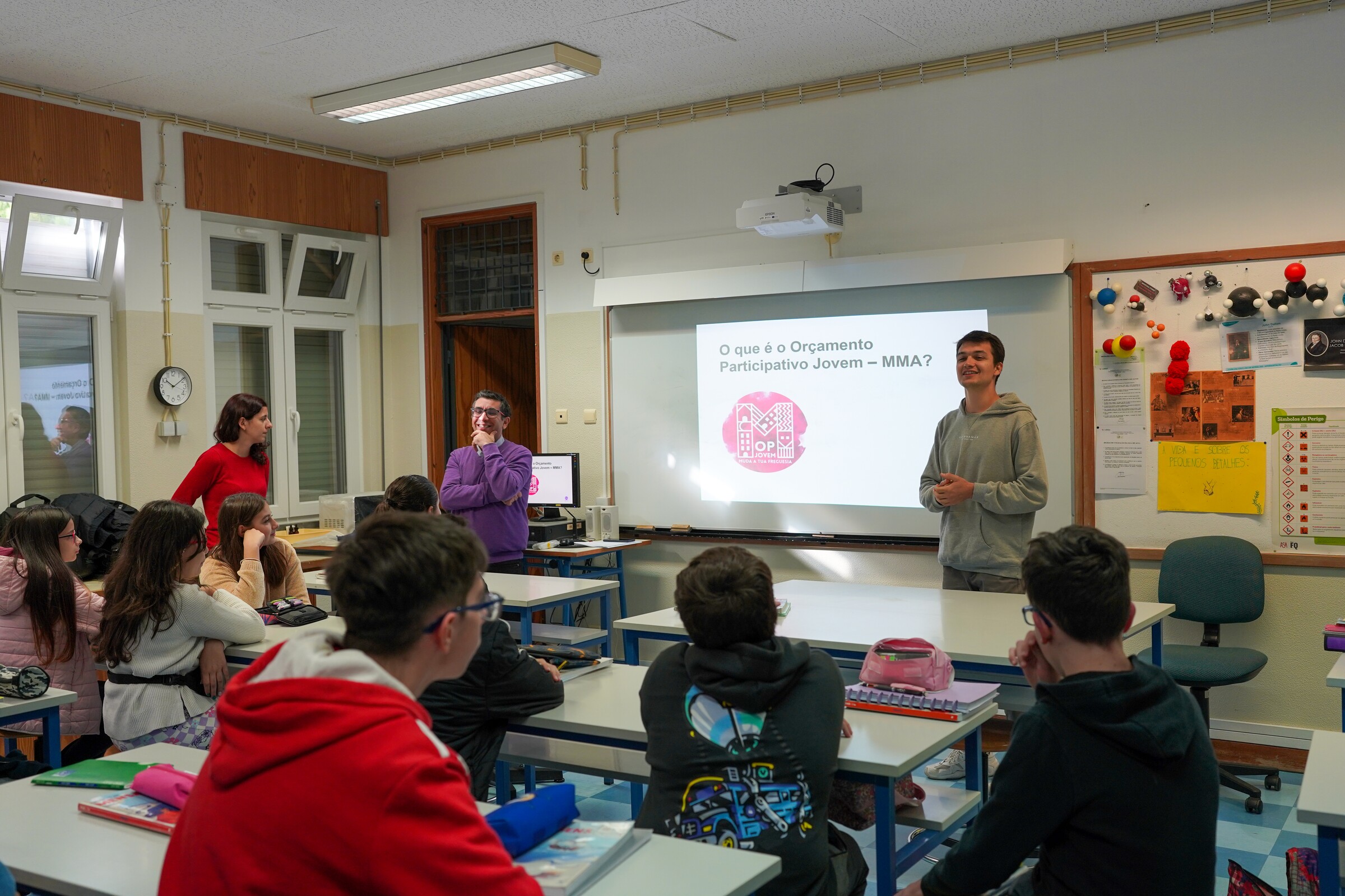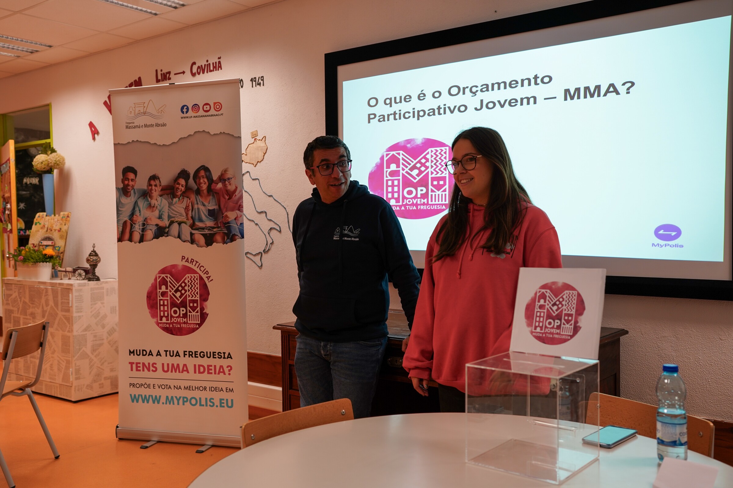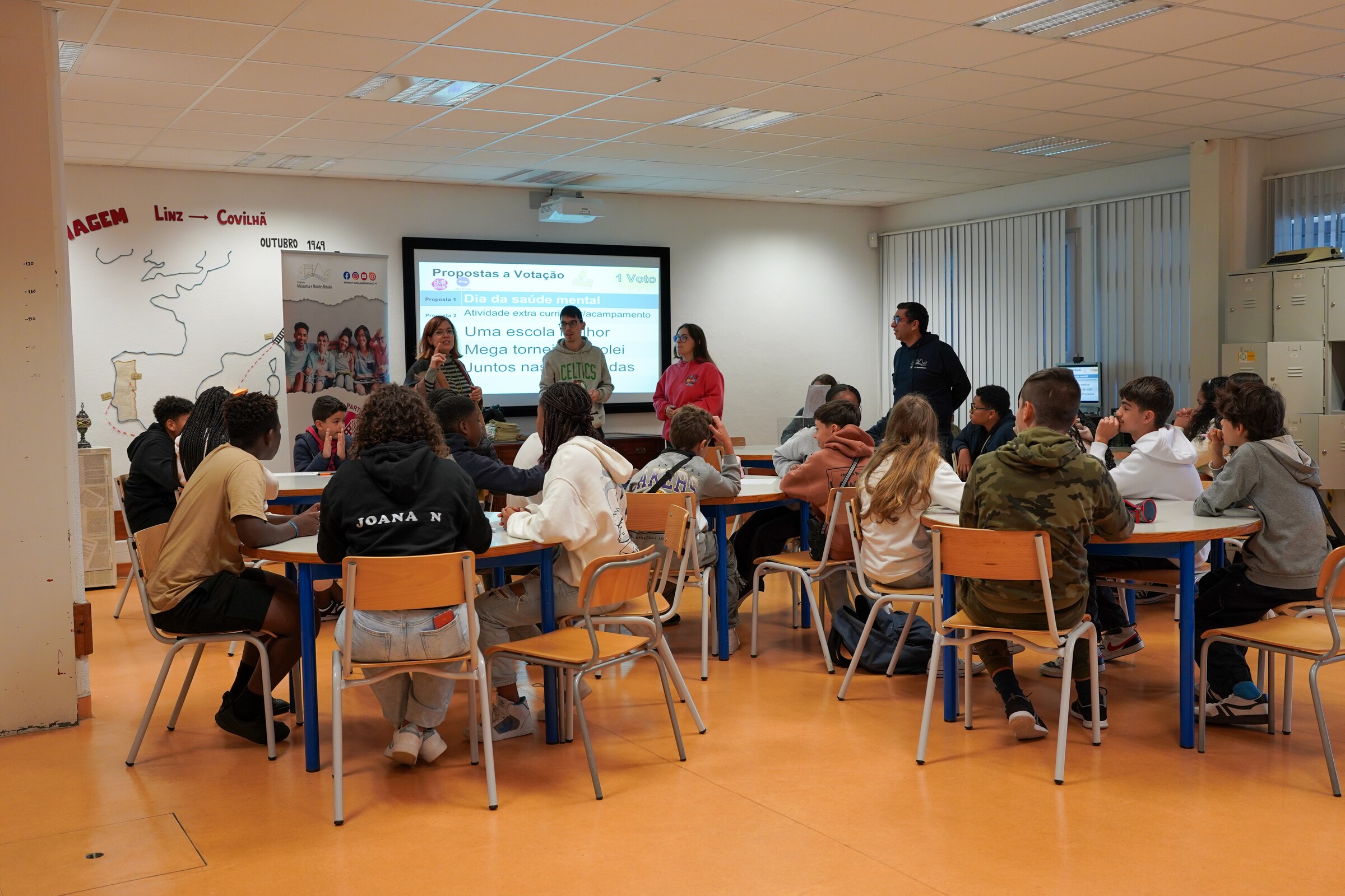 Os jovens do 3.º ciclo das escolas E.B.2,3 Ruy Belo, E.B.2,3 Prof. Dr. Egas Moniz e E.B.2,3 D. Pedro IV encontram-se a apresentar, debater e votar propostas em sala de aula com a colaboração dos respetivos docentes;
