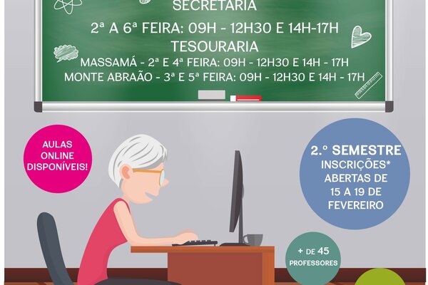 A Universidade Sénior de Massamá e Monte Abraão vai abrir as inscrições para o 2º semestre do presente ano letivo. O período ...2021Site Institucional | Arquivo -