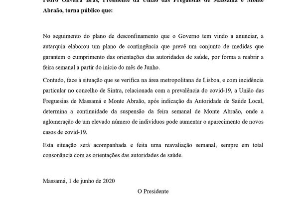 Consciente das dificuldades que a pandemia do COVID-19 criou às famílias e empresas, a União das Freguesias de Massamá e Monte ...Site Institucional | Arquivo -