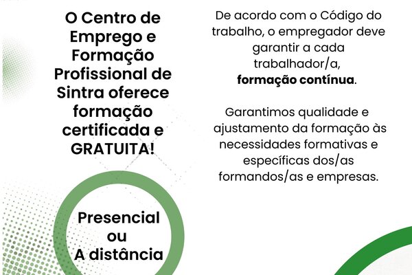 O Centro de Emprego e Formação Profissional de Sintra, oferece formação gratuita e certificada, presencial ou à ...2023Site Institucional | Arquivo -