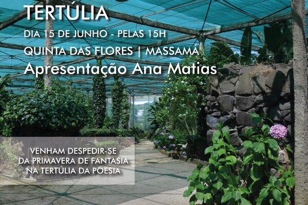 Venha assistir à Tertúlia de Poesia, no dia 15 de junho, às 15h00, na Estufa da Quinta das Flores, em Massamá. Entrada livre.