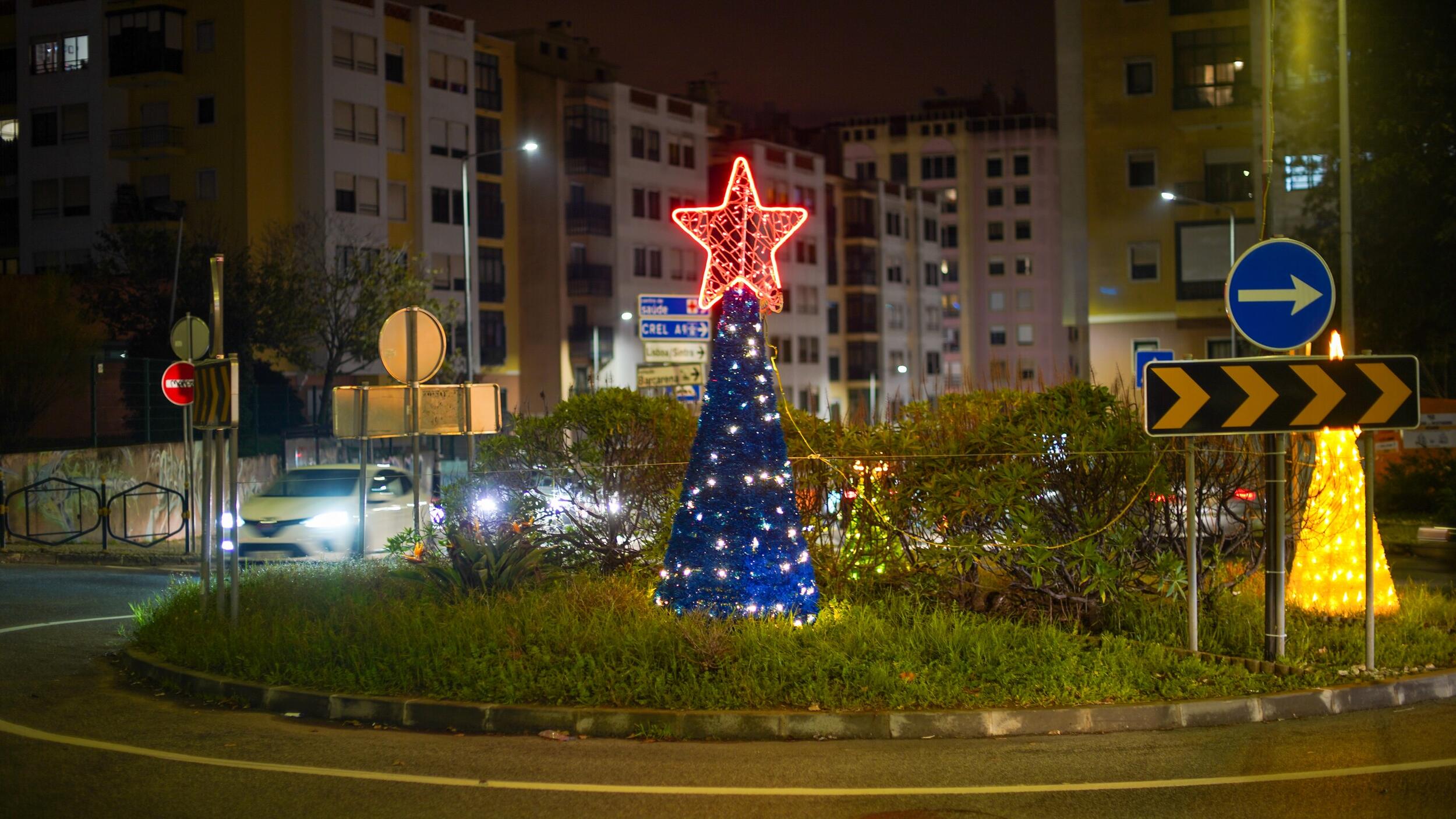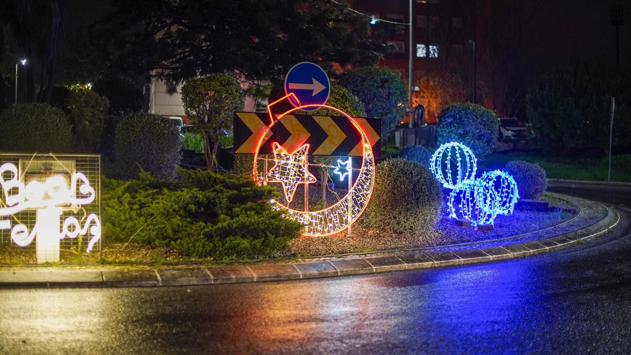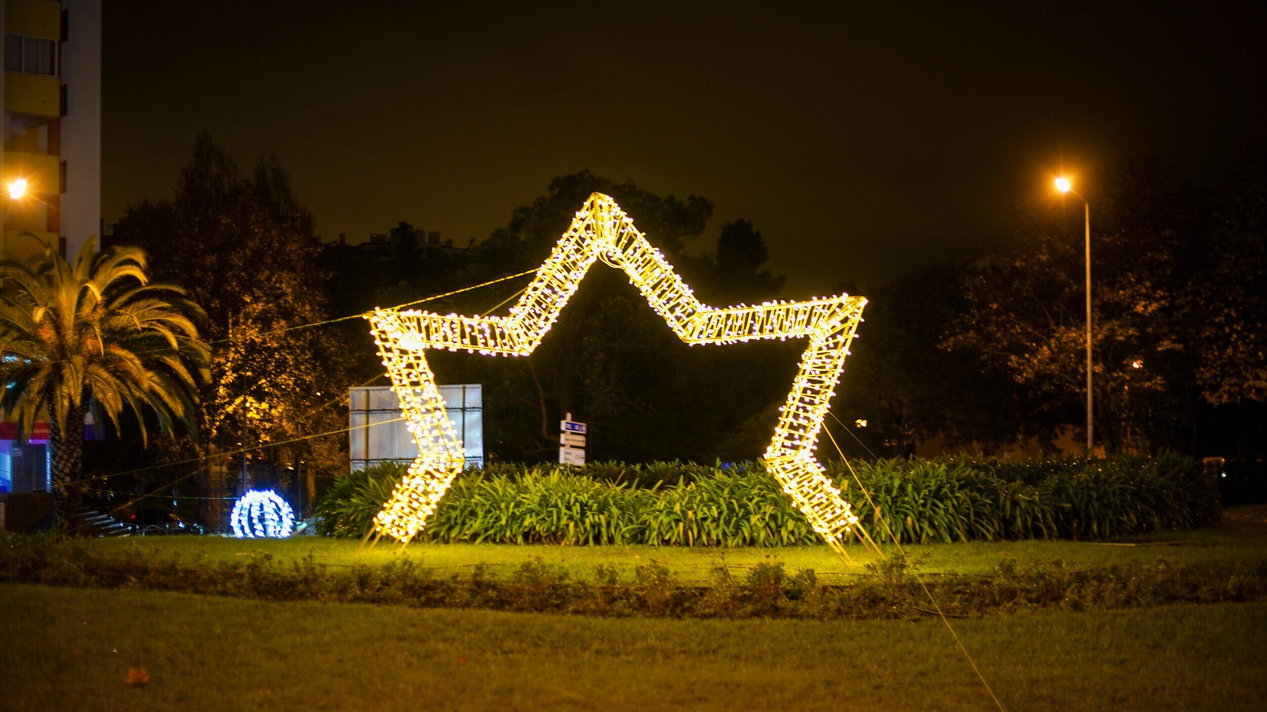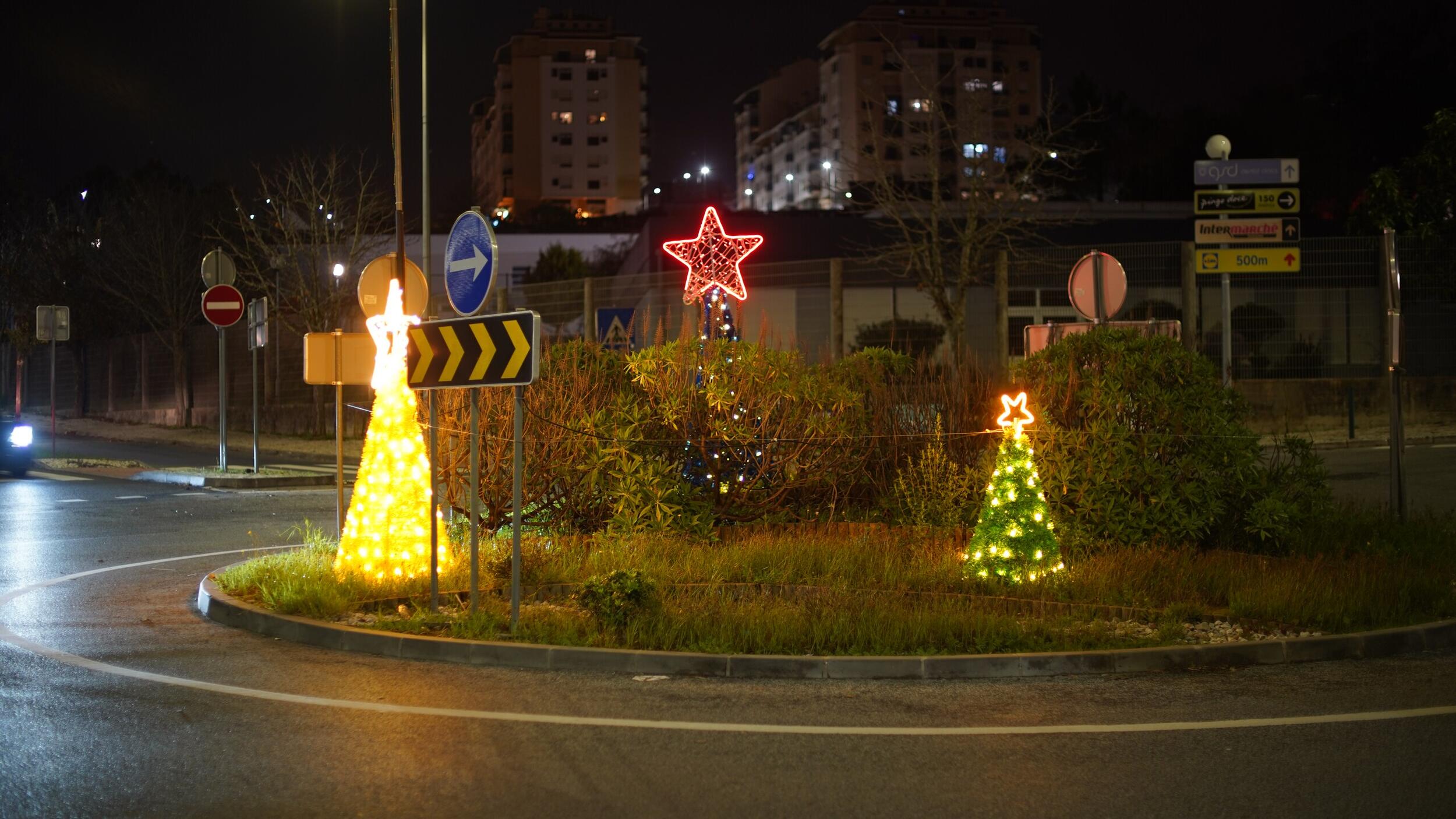 O destaque especial desta iluminação vai para a bola presente que está no acesso à Estufa da Quinta das Flores, em Massamá, e para o presente gigante no Parque 25 de Abril, em Monte Abraão.