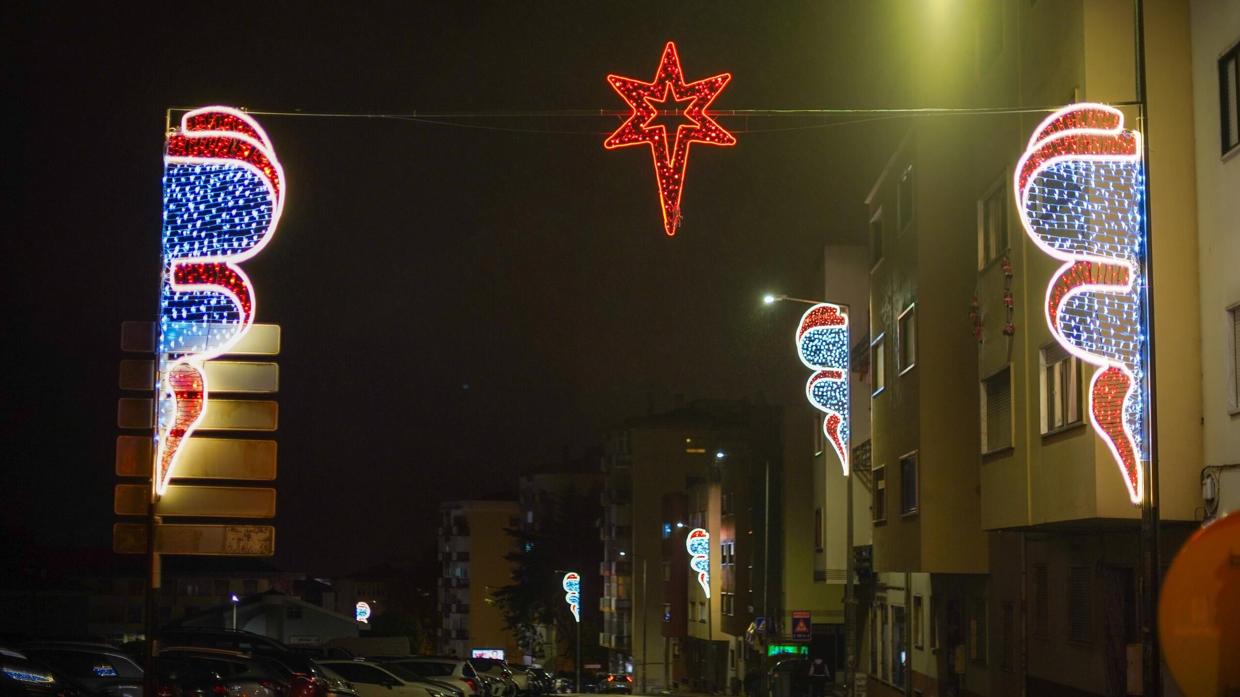 As ruas da freguesia brilham com a iluminação de Natal, trazendo um toque festivo à nossa comunidade.