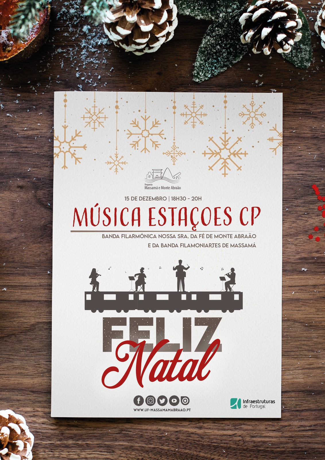 No próximo dia 15 entre as 18h30 e as 20h, assista às atuações da Banda Filarmónica Nossa Sra. Da Fé de Monte Abraão e da Banda Filamoniartes de Massamá, nas estações ferroviárias de Massamá e Monte Abraão.