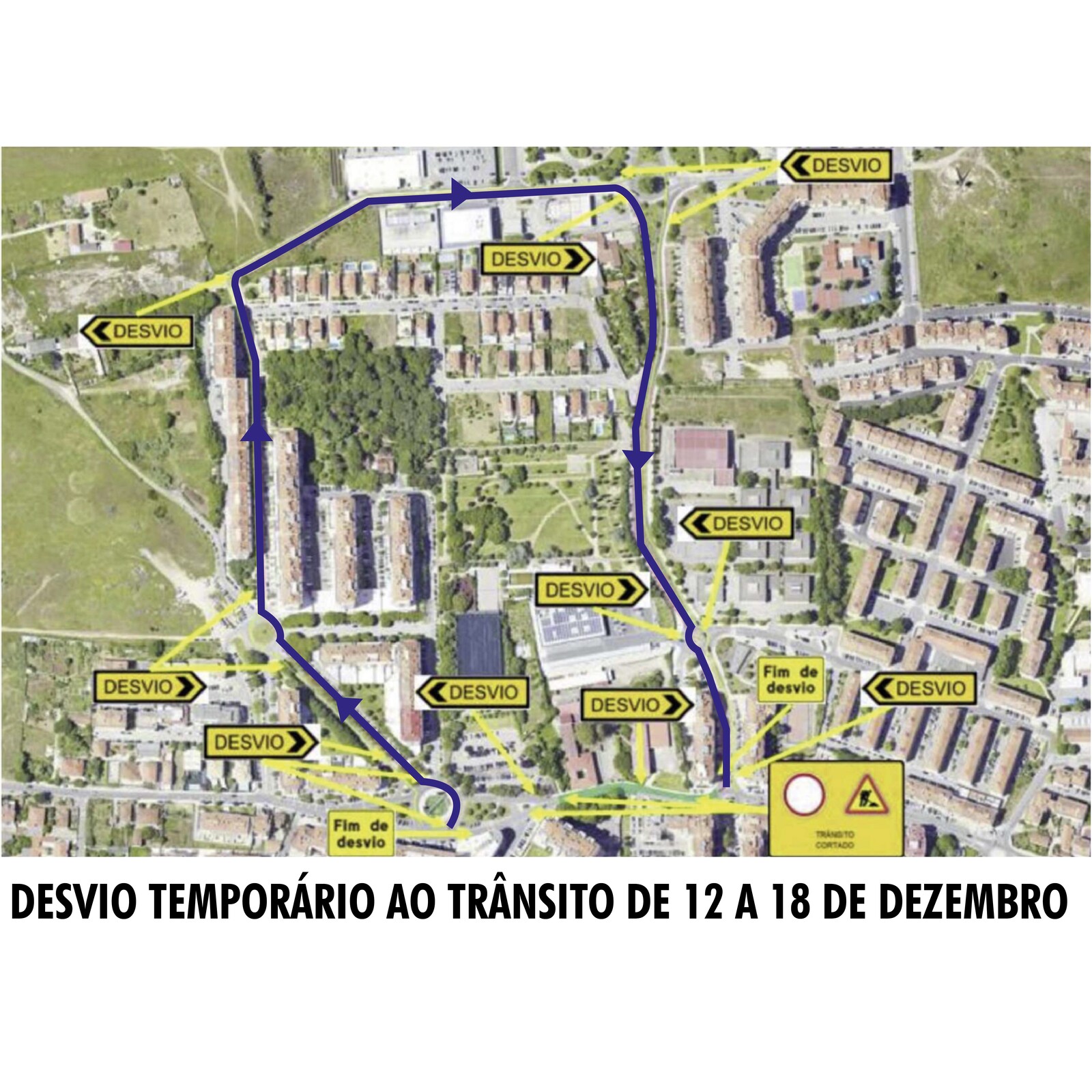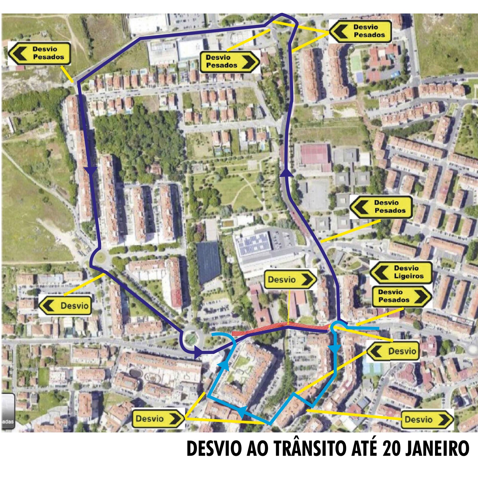 Os desvios ao trânsito e o acesso pedonal será acautelado de forma a possibilitar a circulação. Consulte as imagens para visualizar os desvios.