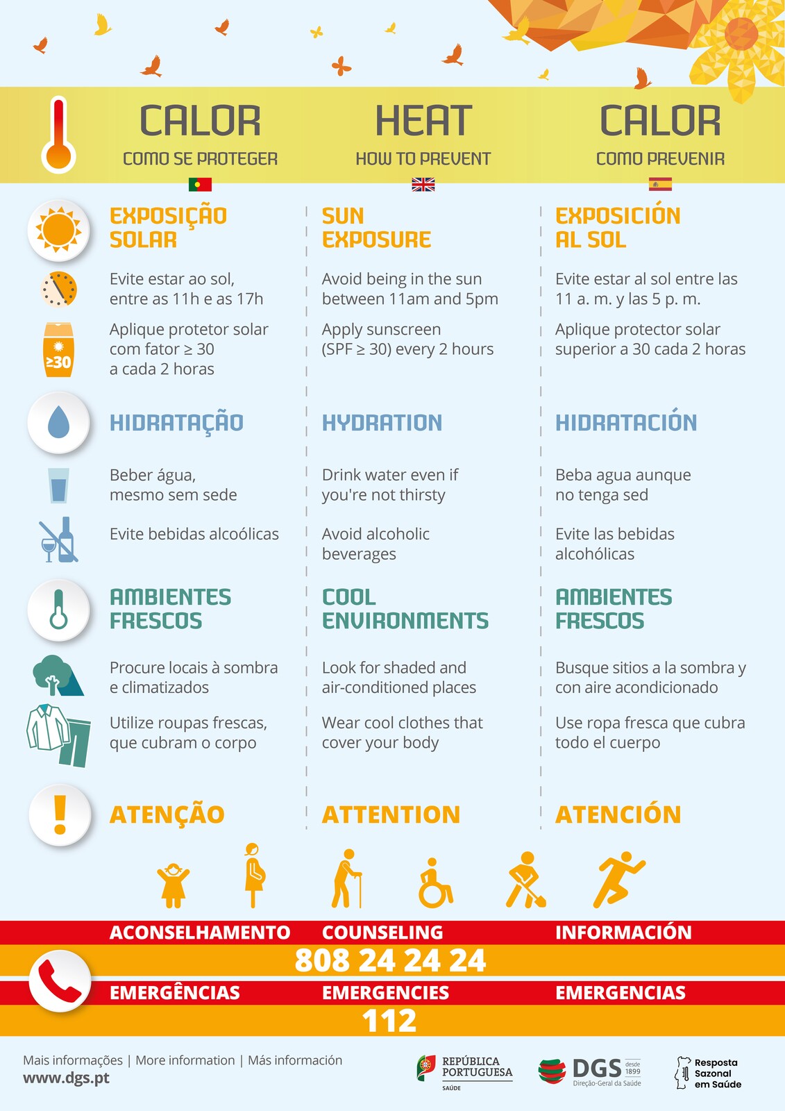 Mantenha-se informado através das páginas da Direção-Geral da Saúde, em www.dgs.pt e do Instituto Português do Mar e da Atmosfera em www.ipma.pt e da Autoridade Nacional de Emergência e Proteção Civil em www.prociv.pt