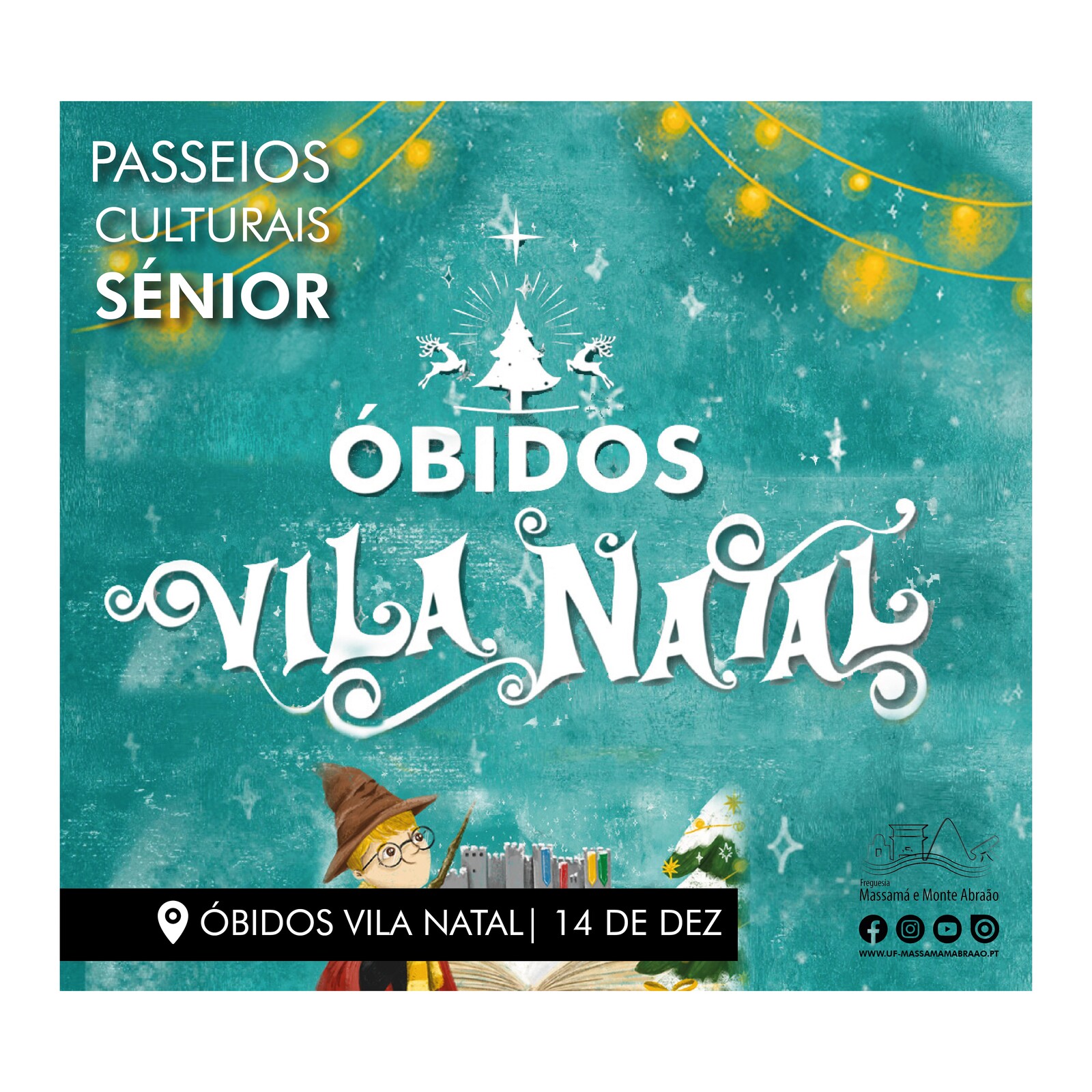 O próximo passeio cultural sénior, entra no espírito natalício com visita a Óbidos à Vila Natal. A vila transformou-se numa Escola de Feiticeiros com muita neve, onde não faltam diversões, como a pista de gelo e visita ao Pai Natal, entre outras novidades como o Laboratório das Poções, a Herbologia ou a Casa do Gigante.