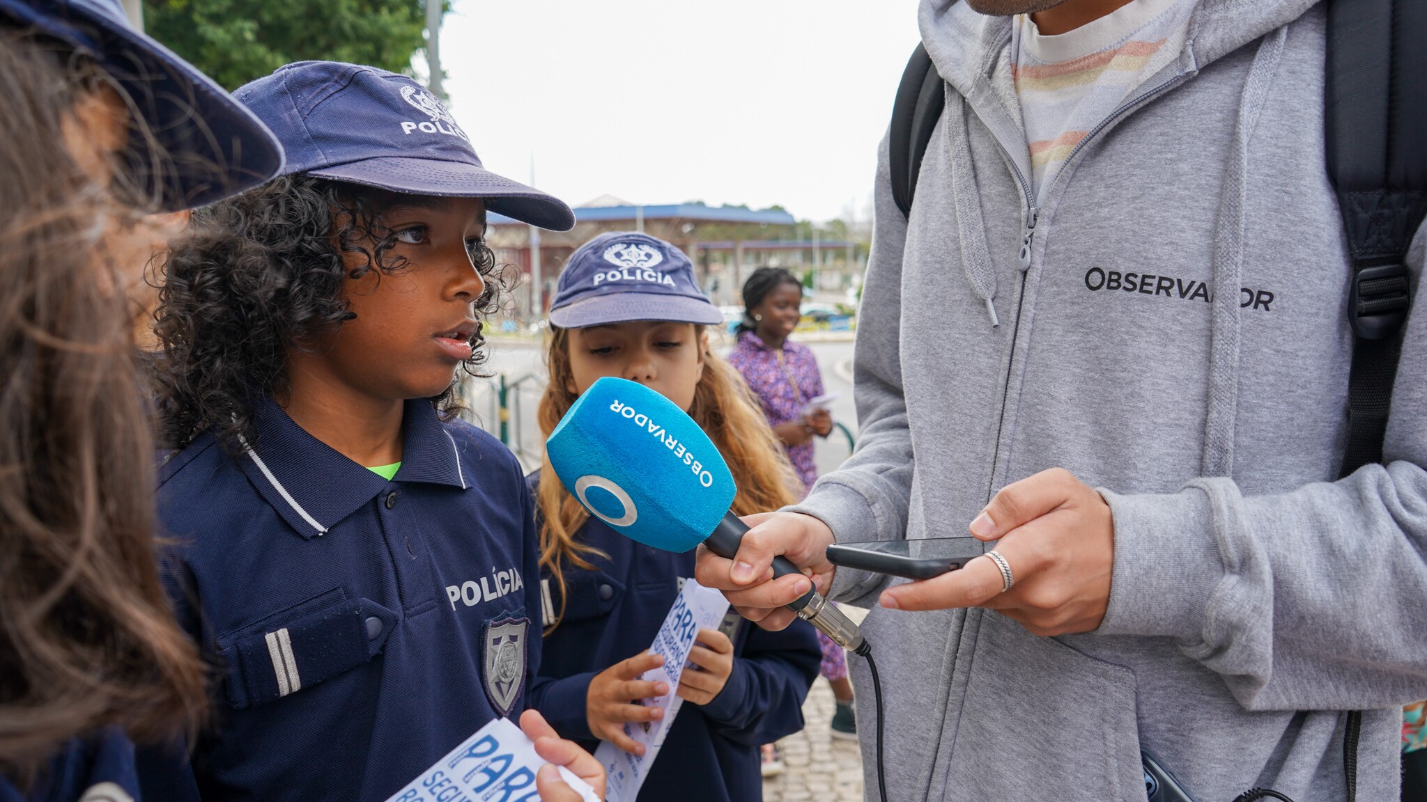 A Polícia de Segurança Pública também esteve presente e dinamizou uma ação de sensibilização com os nossos "Mini Polícias" fardados a rigor e que teve um convidado especial, a Rádio Observador.
