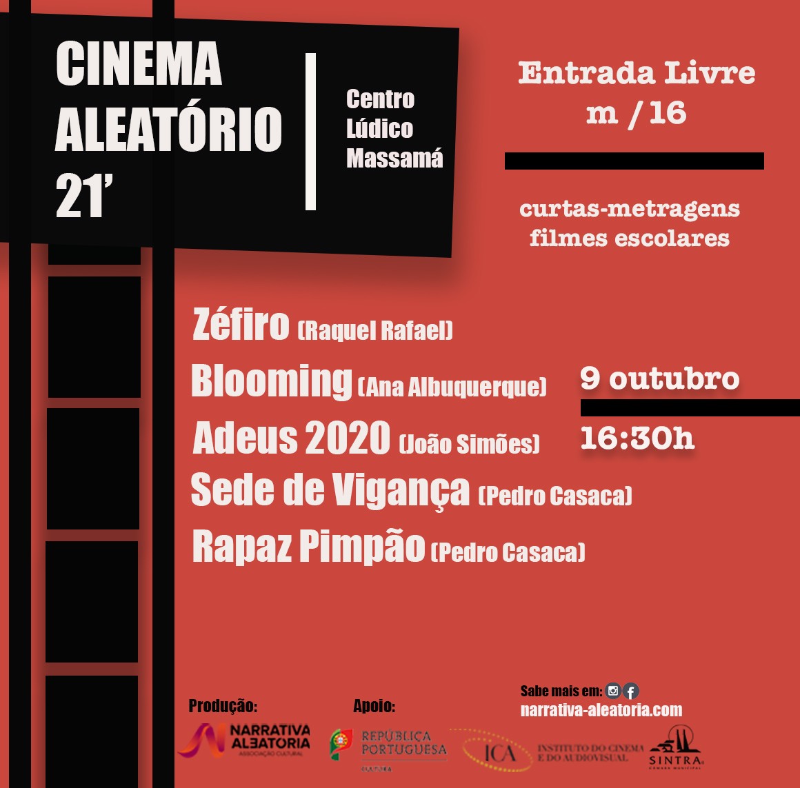 Depois de ter apresentado "Prelúdio" um documentário sobre o impacto que o COVID-19 teve nos jovens, a Narrativa Aleatória presenteia-nos com a iniciativa “Cinema Aleatório” com a 5ª sessão a decorrer no dia 09/10, no Centro Lúdico de Massamá.