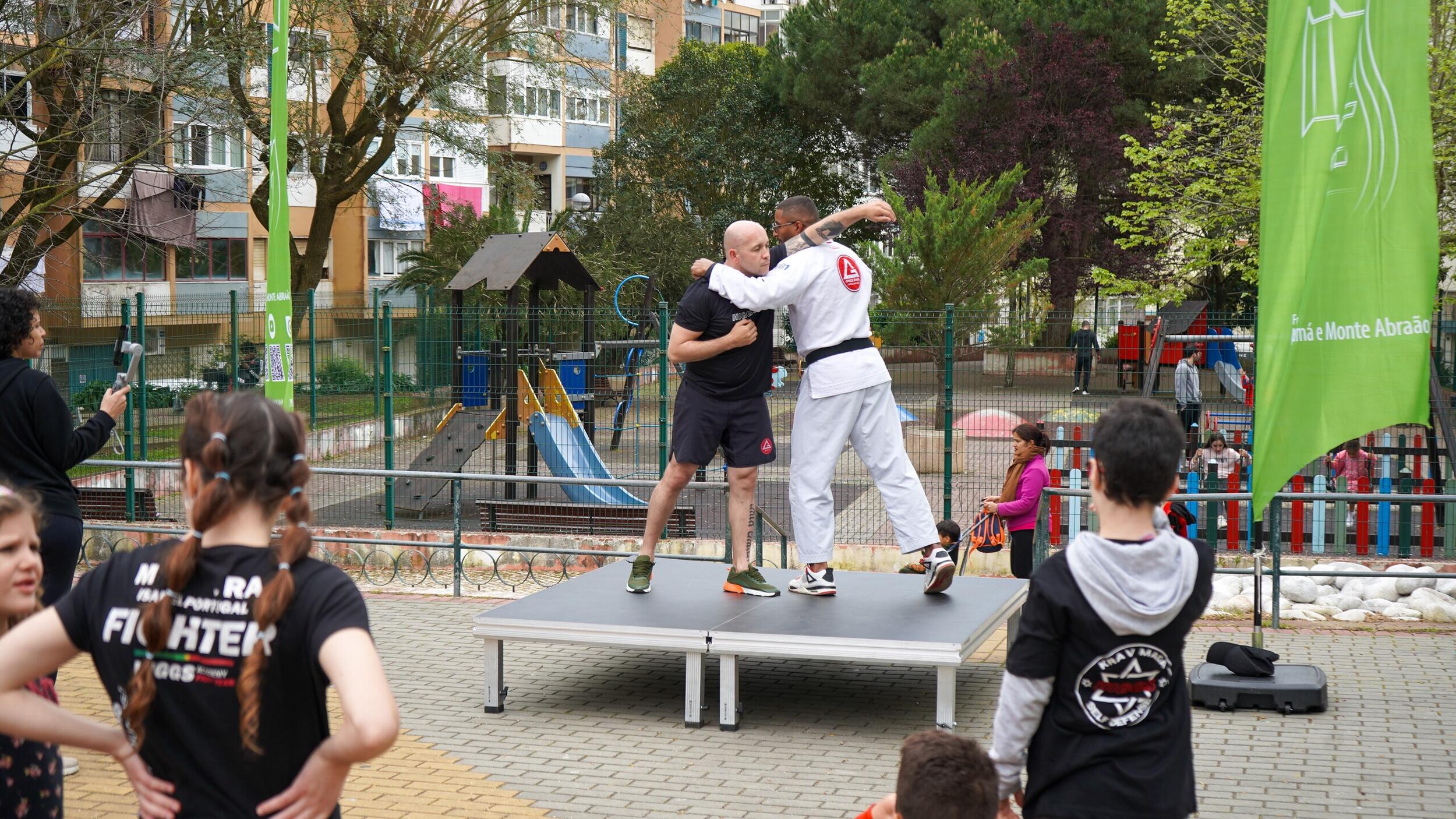 A União das Freguesias de Massamá e Monte Abraão lançou o desafio aos ginásios pertencentes à Rede Freguês e a iniciativa, que teve lugar nos Parques Salgueiro Maia em Massamá, e no Parque 25 de Abril, em Monte Abraão, reuniu entusiastas de todas as idades em torno de uma variedade de atividades físicas. Sob a orientação do Higgs Academy Fight Team e do Centro de Shotokai de Queluz, os participantes tiveram a oportunidade de desfrutar de aulas gratuitas em diversas modalidades, desde ginástica e yoga até técnicas avançadas de autodefesa como MMA, Boxe, Jiu-Jitsu, Kickboxing e Krav Maga.
