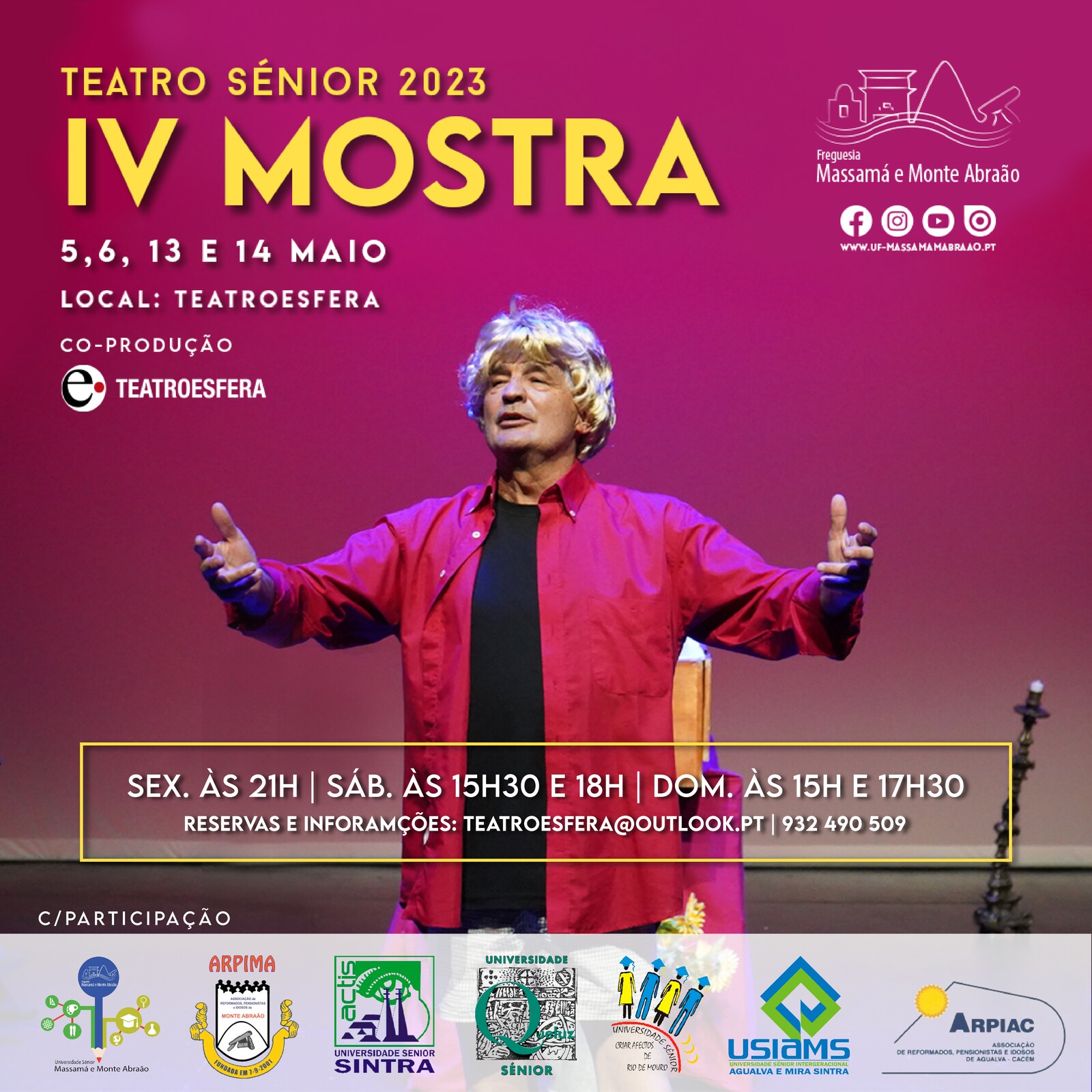 - às 17h30 – Universidade Sénior Massamá e Monte Abraão | Oficina de Teatro – Peça Felizmente há Luar