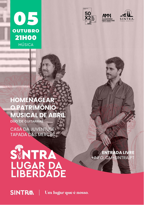 A Câmara Municipal de Sintra, promove no âmbito das comemorações dos 50 anos do 25 de abril, concertos descentralizados nas diferentes freguesias do concelho. O próximo concerto terá lugar no próximo sábado, dia 5 de outubro, pelas 21h00 na Casa da Juventude da Tapada das Mercês.