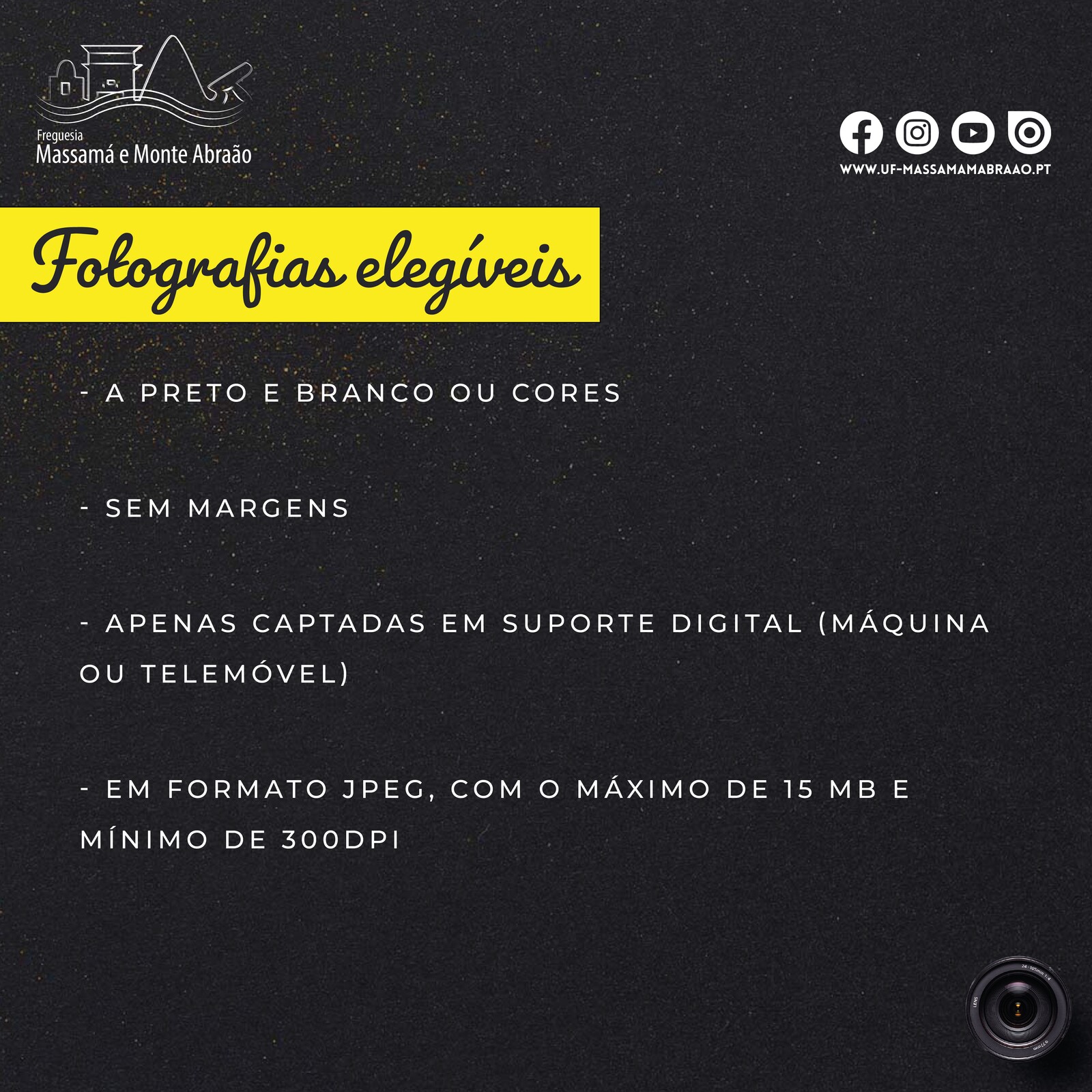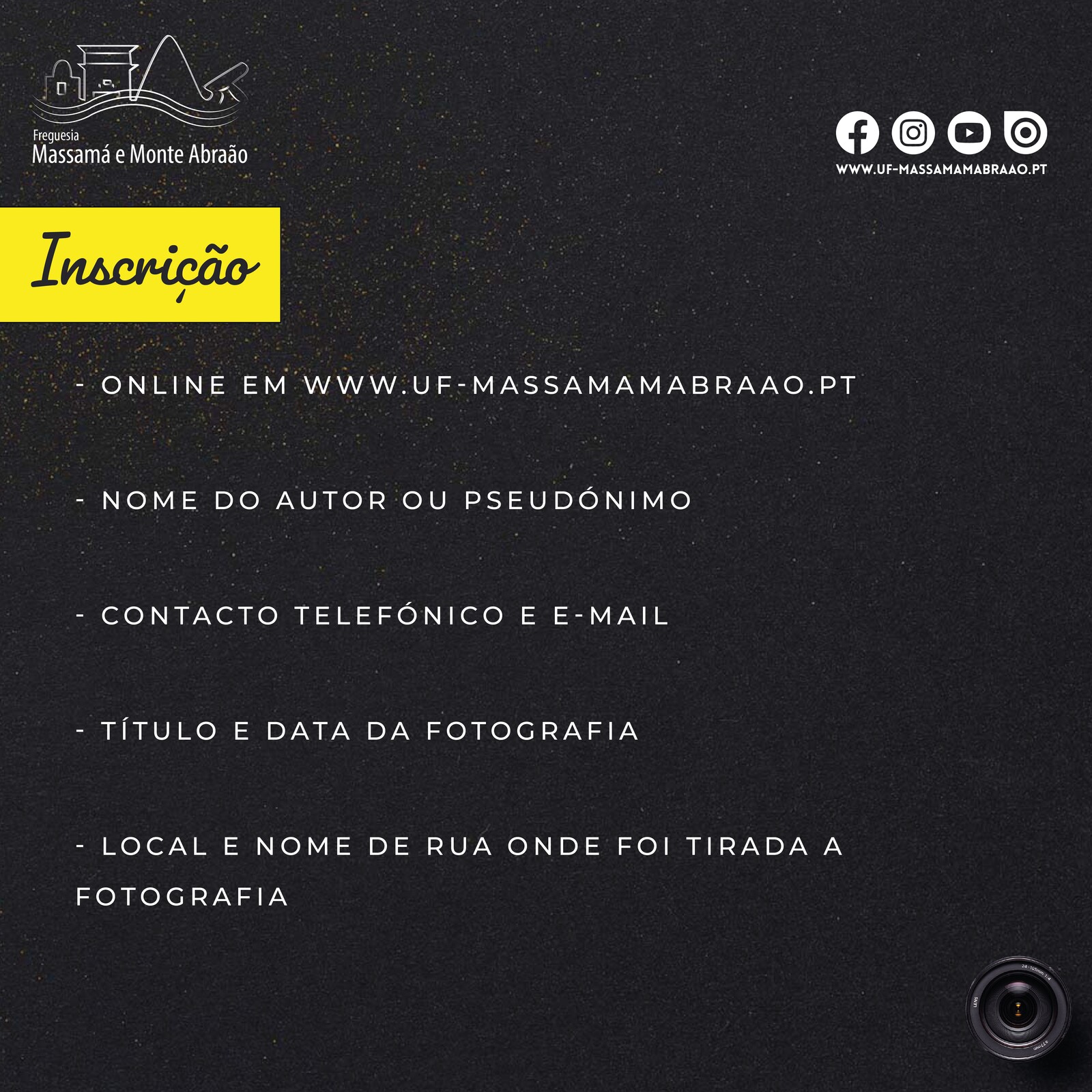 O Concurso de Fotografia da União das Freguesias de Massamá e Monte Abraão, volta a realizar-se naquela que será a sua II Edição. O tema: “Um Olhar sobre Massamá e Monte Abraão”, convida todos os cidadãos que residem, estudem e trabalhem na freguesia de Massamá e Monte Abraão, a participarem.