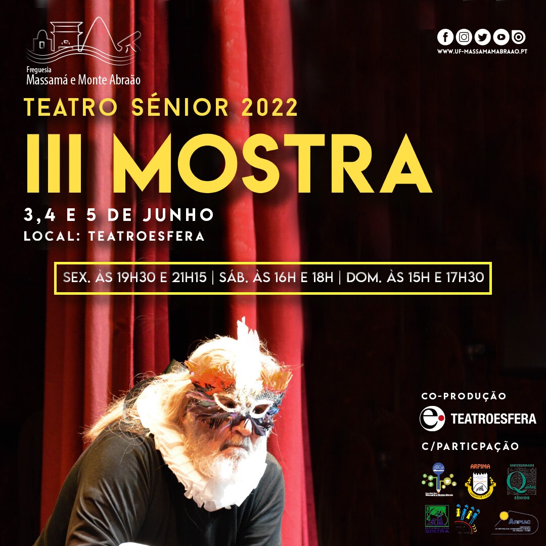 A III Mostra de Teatro Sénior já tem data marcada para os dias 3, 4 e 5 de junho, no Teatroesfera e conta com a participação da ARPIMA, UNIQUE, ACTIS, USCARM, USMMA e ARPIAC.