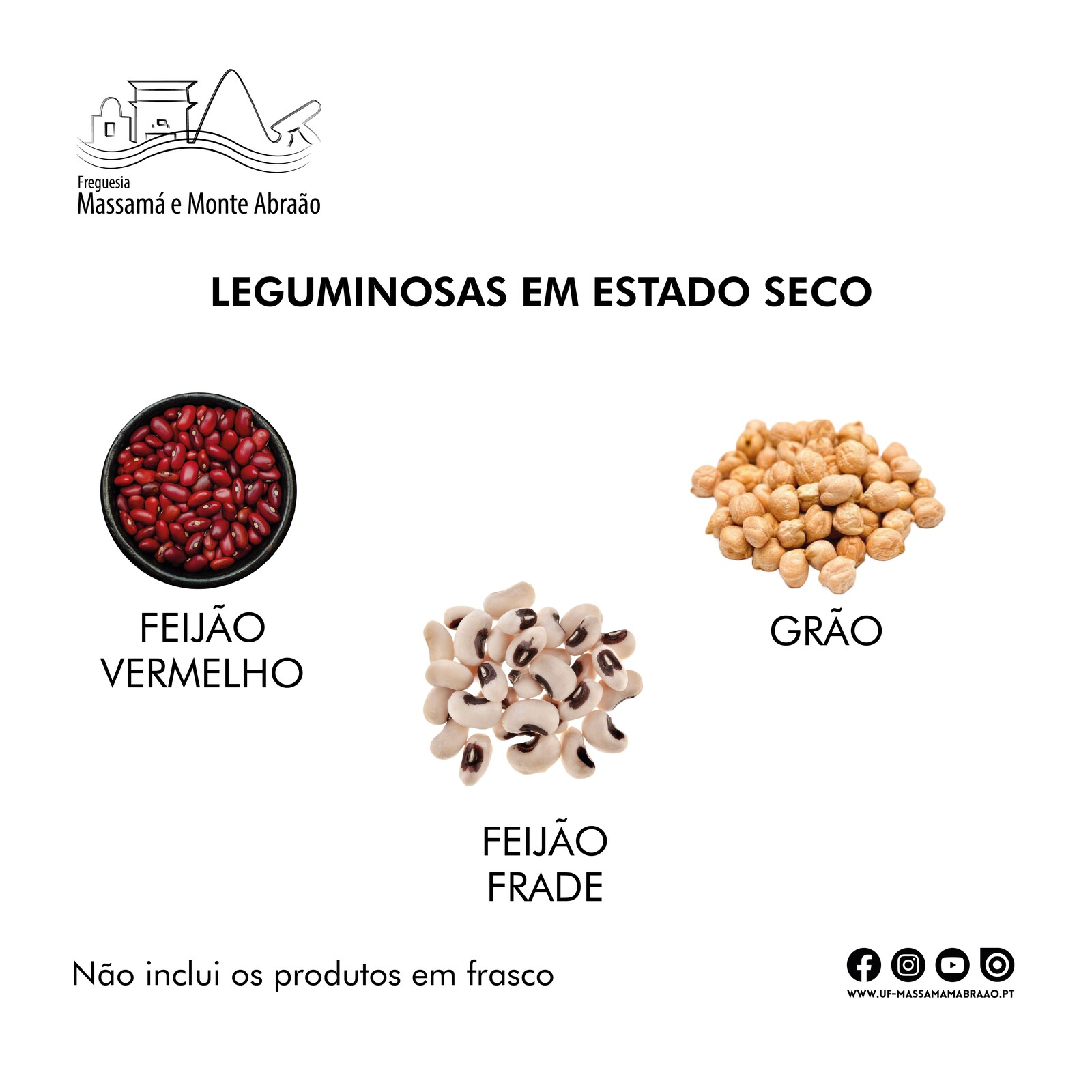➡️ Leguminosas em estado seco, especificamente: feijão vermelho, feijão frade, grão (não inclui os produtos em frasco)