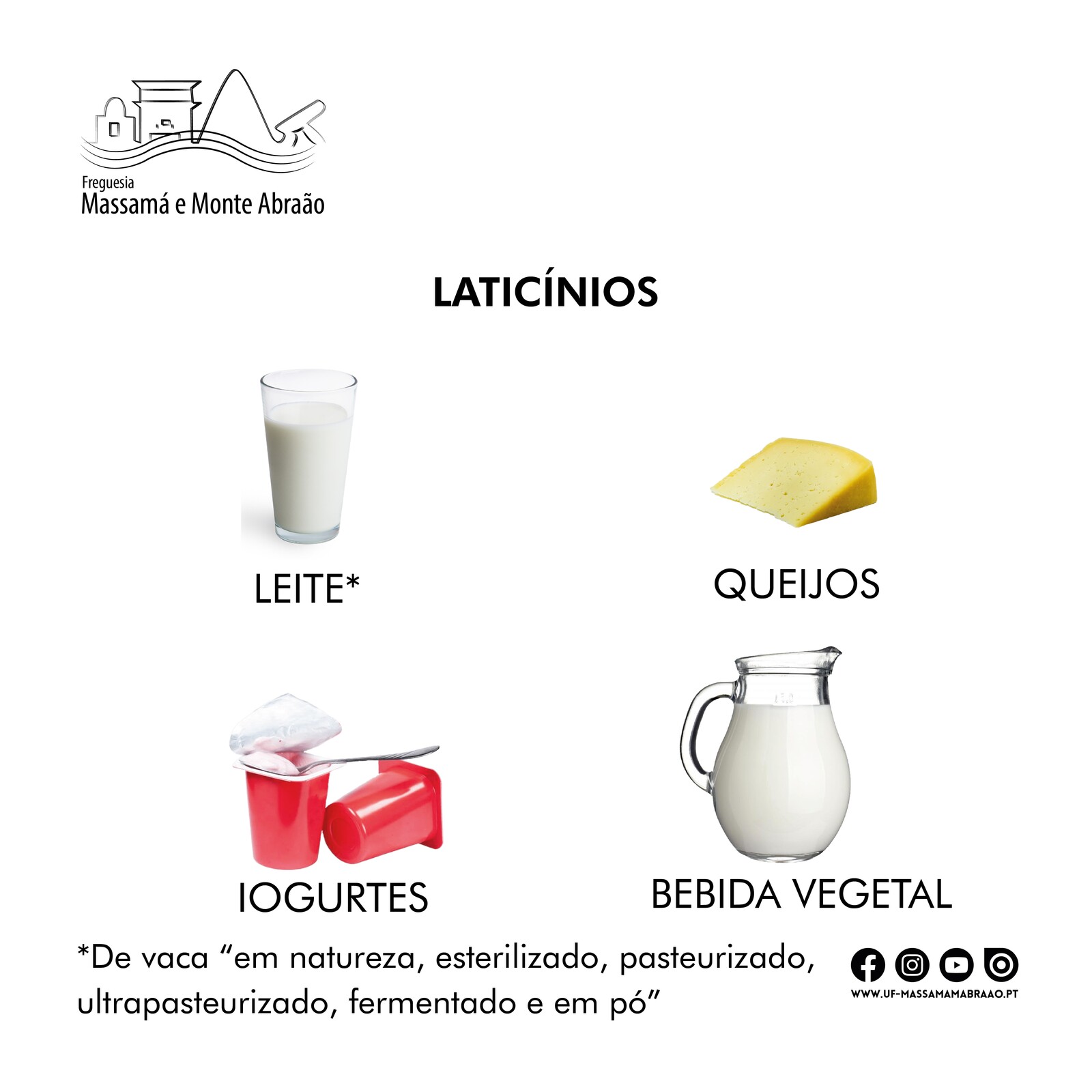➡️ Laticínios, como: leite de vaca “em natureza, esterilizado, pasteurizado, ultrapasteurizado, fermentado e em pó”, queijos, iogurtes e bebidas vegetais