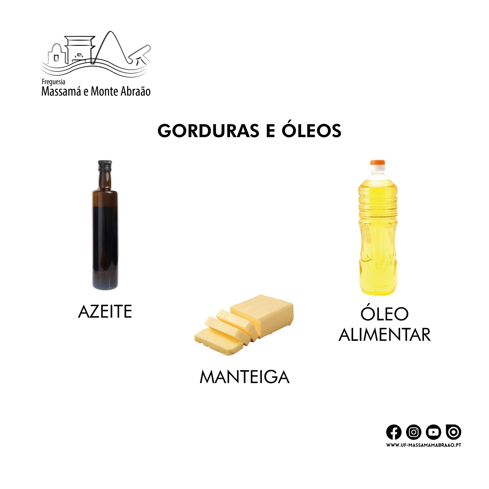 ➡️ Gorduras e óleos, nomeadamente: azeite, óleos alimentares e a manteiga