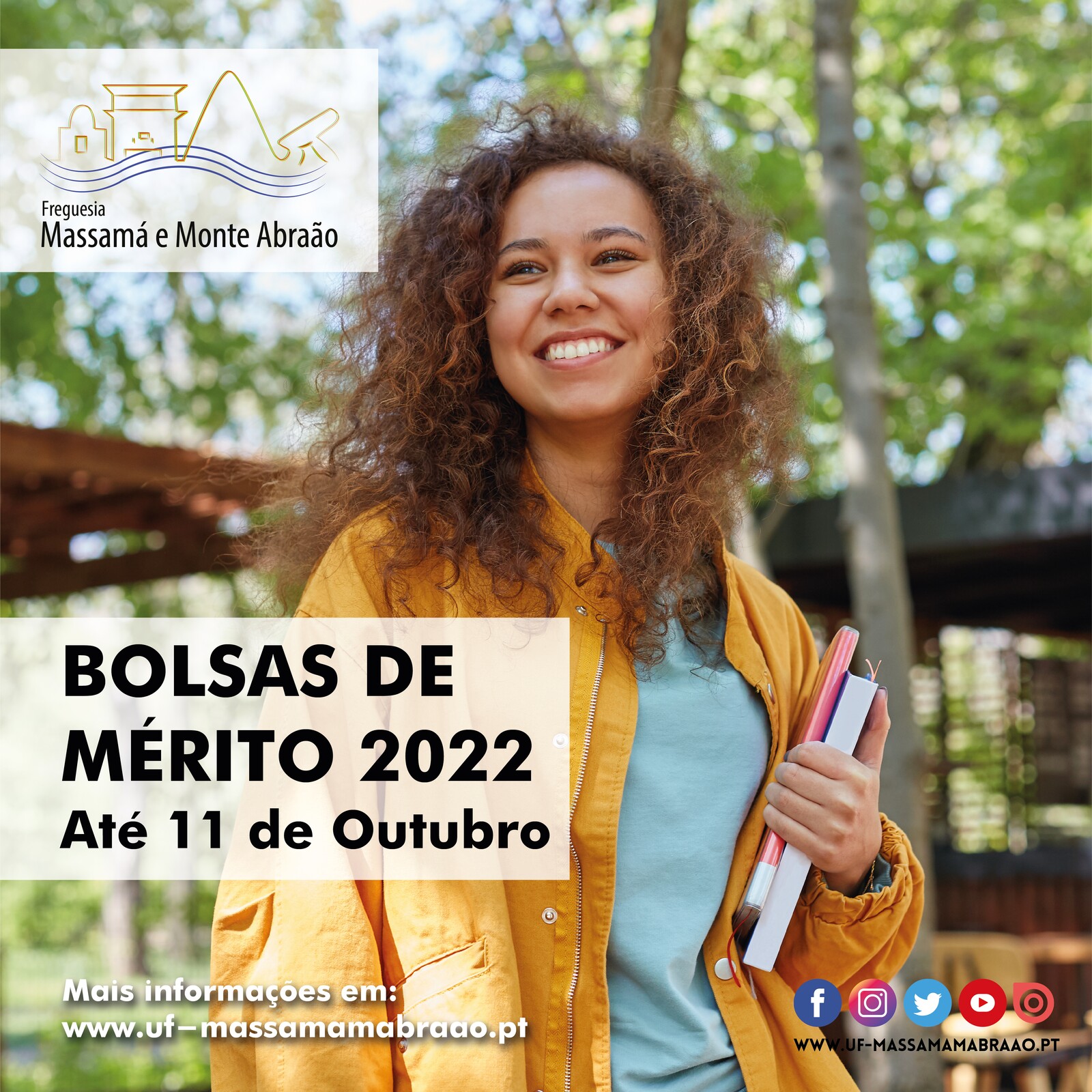 A União das Freguesias de Massamá e Monte Abraão, informa que estão abertas as candidaturas a Bolsas de Mérito, até dia 11 de outubro.