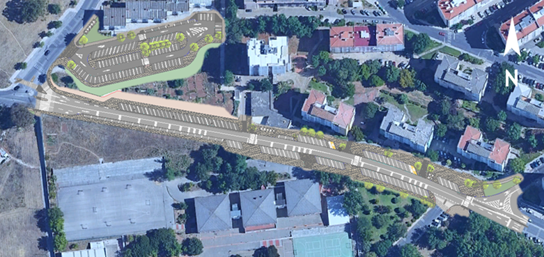 - Reformulação dos passeios e dos lugares de estacionamento existentes ao longo da Avenida Capitão António Gomes Rocha (114 lugares de estacionamento, sendo 2 de mobilidade condicionada);