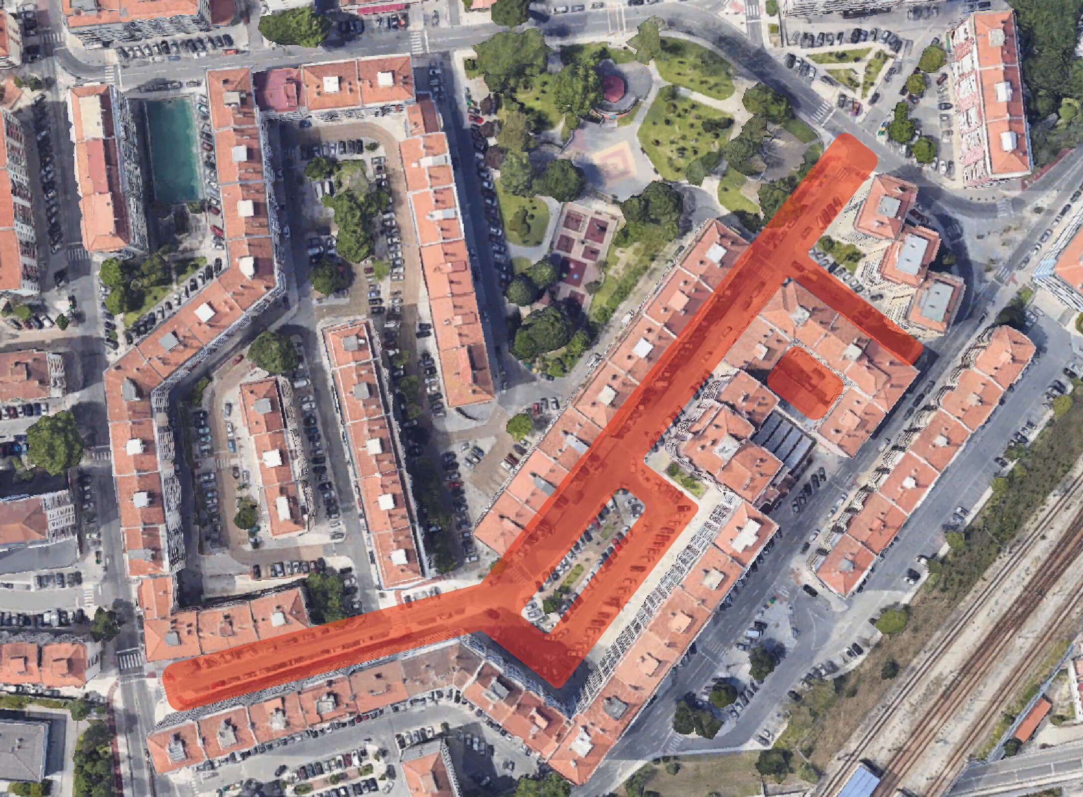 Esta intervenção, visa ordenar o estacionamento e criar um percurso pedonal acessível, visando melhorar a circulação automóvel e pedonal, numa área de intervenção de 3.700m2. Resultará em 166 lugares de estacionamento legalizados.