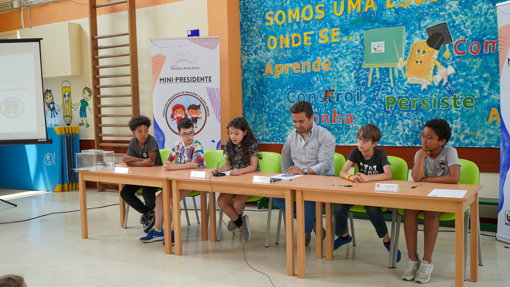 Como junho é o mês de celebração do Dia Mundial da Criança, realizou-se no final do mês nas escolas do 1.º ciclo da freguesia o projeto dos “Minis-Presidentes”.
