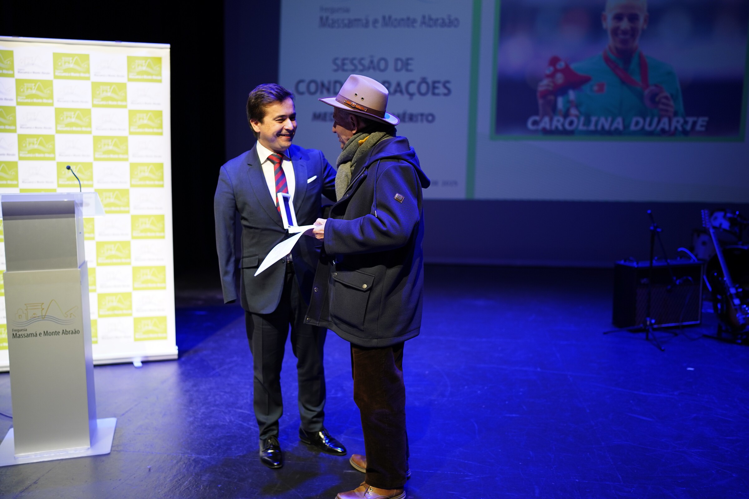 Na impossibilidade da presença da atleta Carolina Duarte, por estar em competições no dia da sessão fora do país, a medalha foi entregue a um elemento da direção da Juventude Operária de Monte Abraão, António Carrasco.