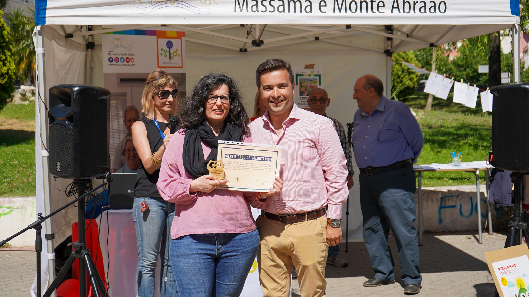 No encerramento da festa, o presidente da União das Freguesias de Massamá e Monte Abraão, Pedro Oliveira Brás, executivo, e o presidente da Assembleia de Freguesia, Dr. Victor Hugo Alves, entregaram uma lembrança e um certificado de voluntariado a cada professor.