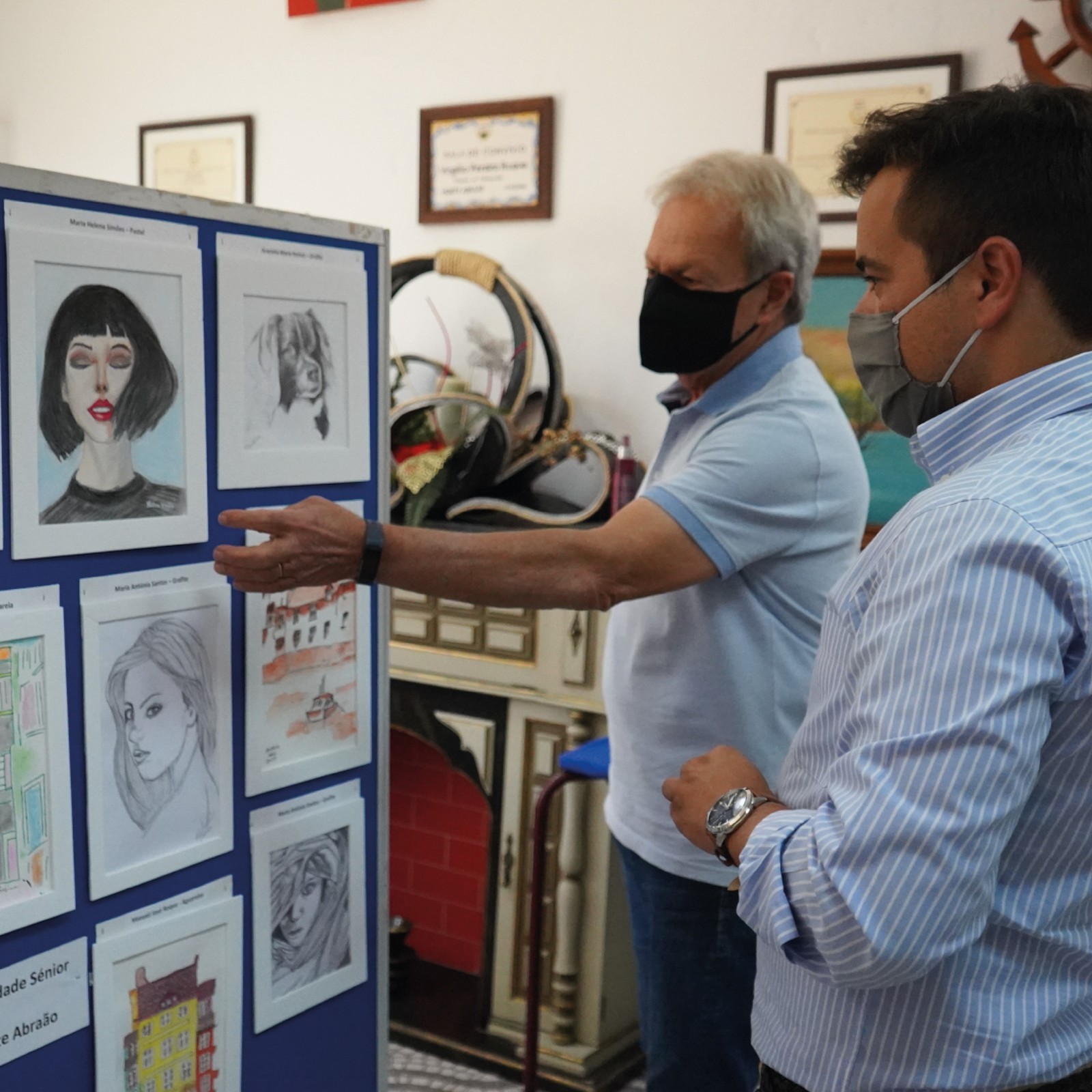 O presidente Pedro Oliveira Brás, visitou a exposição “Pintura, traço e desenho”, nas instalações da Associação de Reformados, Pensionistas e Idosos de Monte Abraão (ARPIMA).