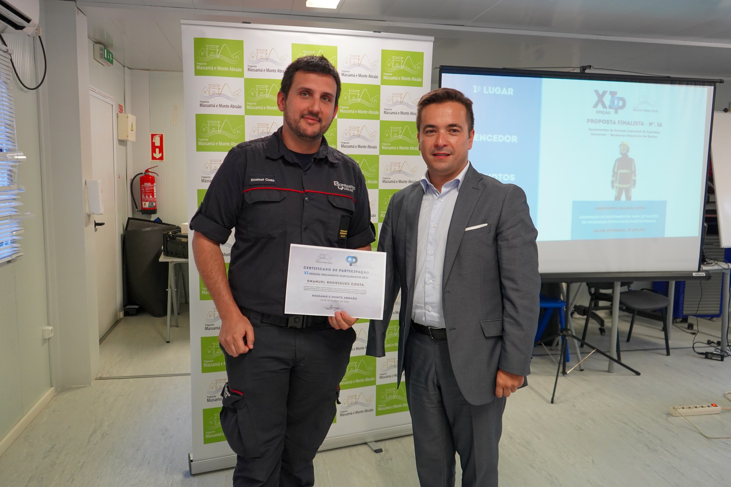 - Em 1.º lugar, com 854 votos, vence a proposta n.º 16 com o título "Equipamento de Proteção Individual de Incêndios Estruturais para os Bombeiros Voluntários de Queluz"