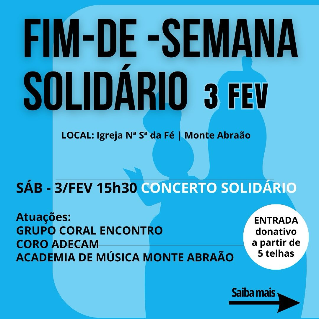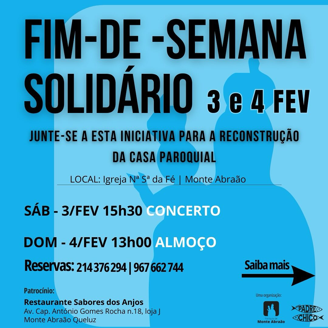 No próximo fim de semana, dias 3 e 4 de fevereiro, assista aos concertos e almoço solidário, que se vai realizar na Igreja Nossa Sra. da Fé, em Monte Abraão, para ajudar na reconstrução da casa paroquial.