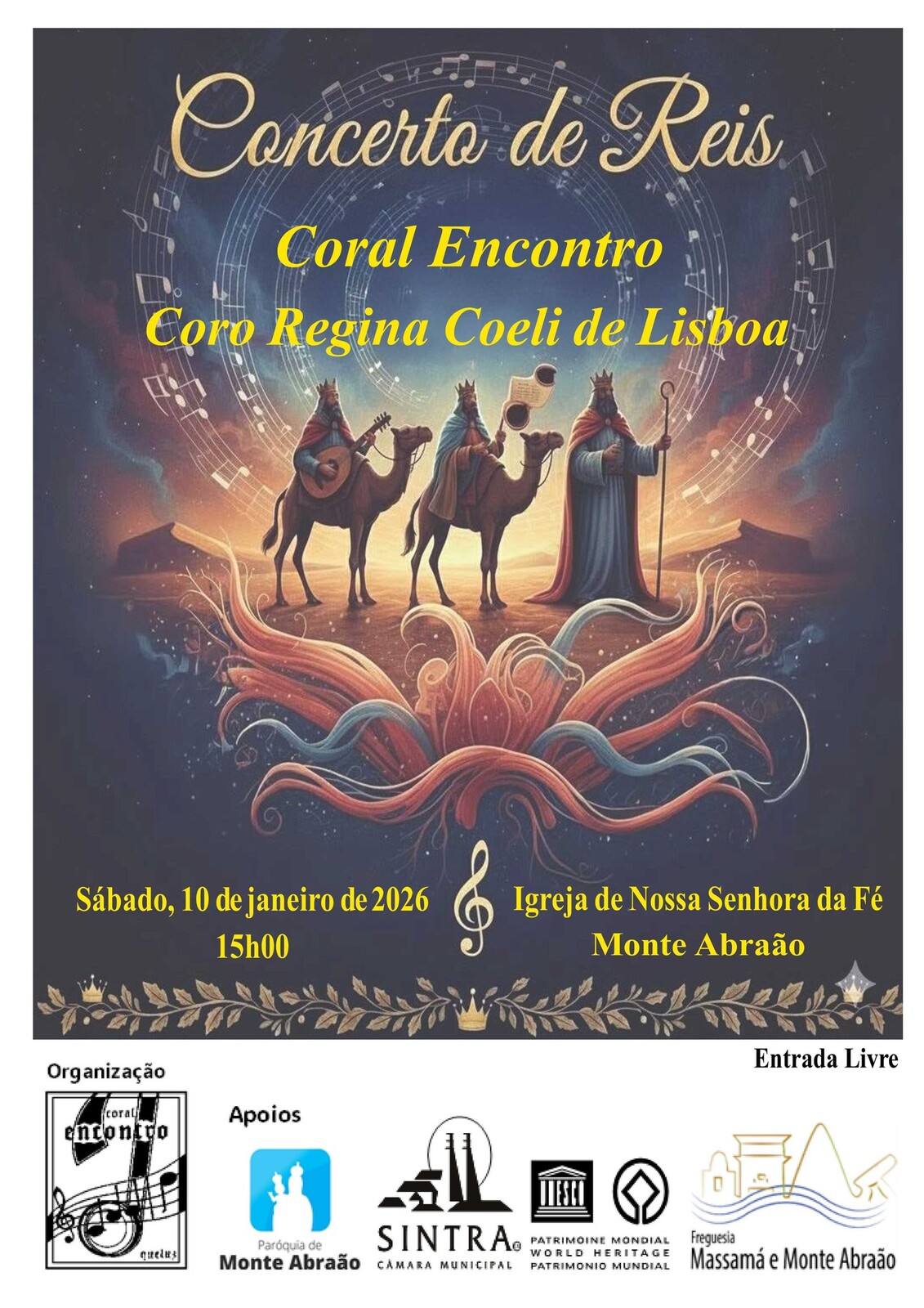 O Coral Encontro convida toda a comunidade a assistir ao Concerto de Reis, na Igreja de Nossa Senhora da Fé, em Monte Abraão.