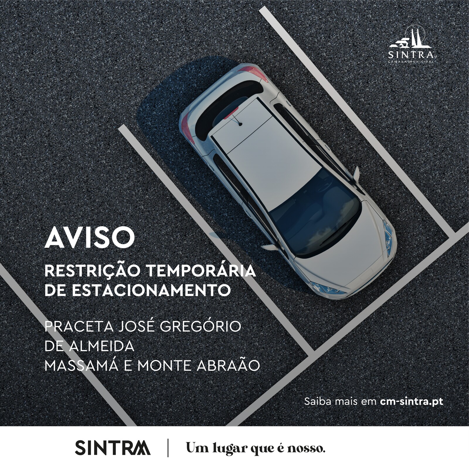A União de Freguesias de Massamá e Monte Abraão informa que, devido a trabalhos a realizar pela Câmara Municipal de Sintra na Praceta José Gregório de Almeida, será necessário reduzir a oferta de cerca de 50 de lugares existentes para garantir a segurança dos utilizadores do estacionamento de superfície existente, atualmente com 200 lugares, delimitando algumas zonas do espaço de estacionamento em causa.