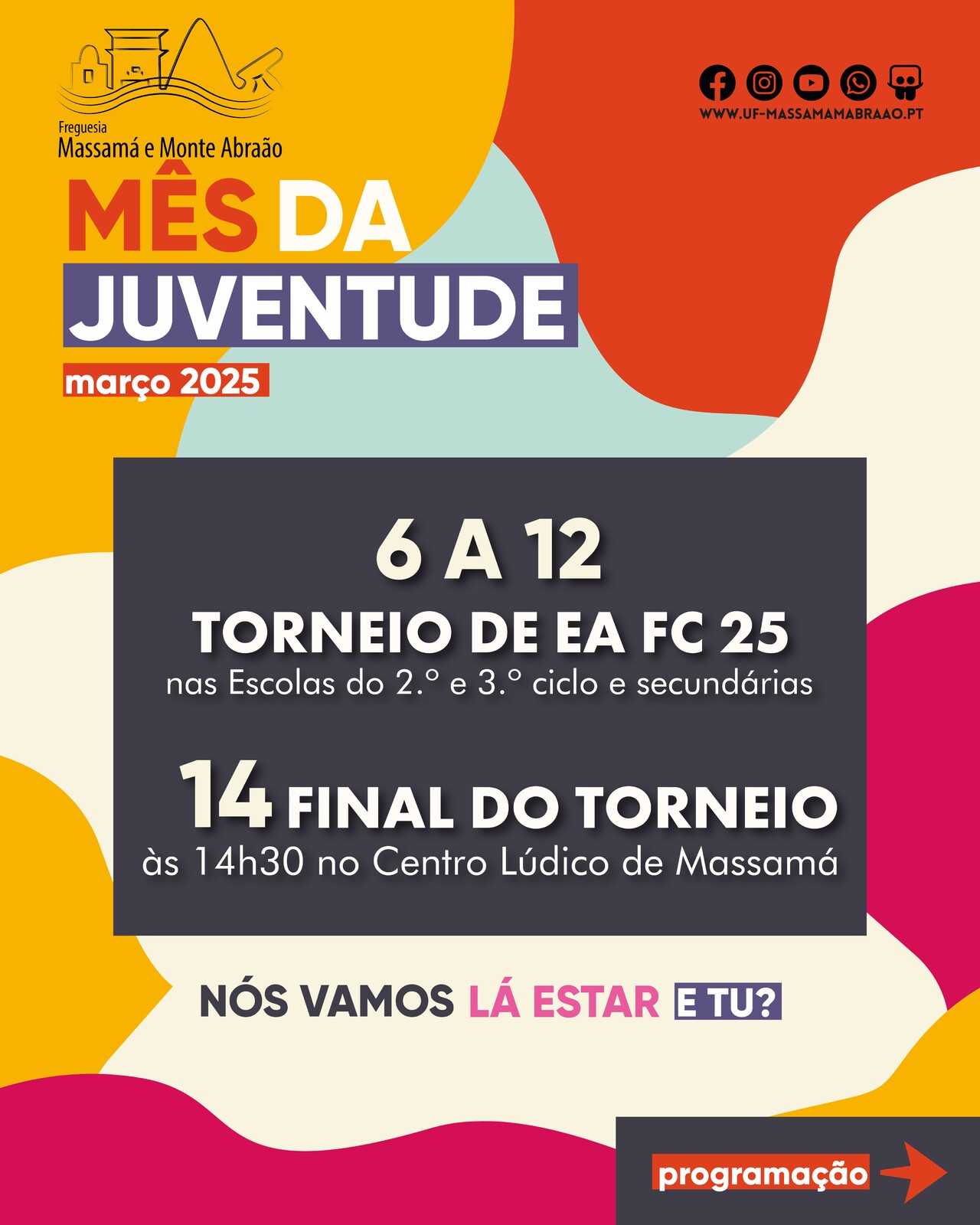 Durante o Mês da Juventude, promovido pela União das Freguesias de Massamá e Monte Abraão, serão dinamizadas diversas atividades gratuitas, proporcionando momentos de convívio, aprendizagem e entretenimento para os jovens da freguesia. Entre os destaques, encontra-se o Torneio Interescolas EA FC 25, workshops de cinema e literacia financeira, uma sessão de cinema ao ar livre, o espetáculo Show Time Jovem e um animado sunset com DJ Vavá seguido de um concerto do padrinho do Mês da Juventude, o cantor Aragão. Algumas iniciativas são realizadas em parceria com associações culturais e educativas, que visam promover a inclusão, o desenvolvimento de novas competências e a valorização do talento juvenil.