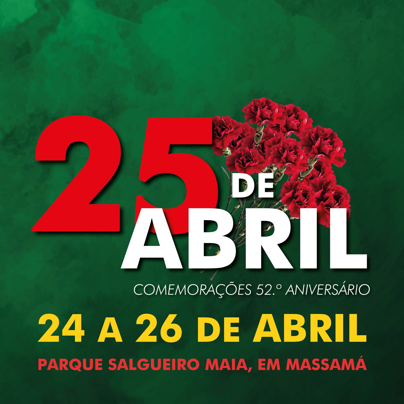 A Câmara Municipal de Sintra vai assinalar o 52.º aniversário do Revolução dos Cravos com um programa diversificado de iniciativas culturais e recreativas na União das Freguesias de Massamá e Monte Abraão, entre os dias 24 e 26 de abril.